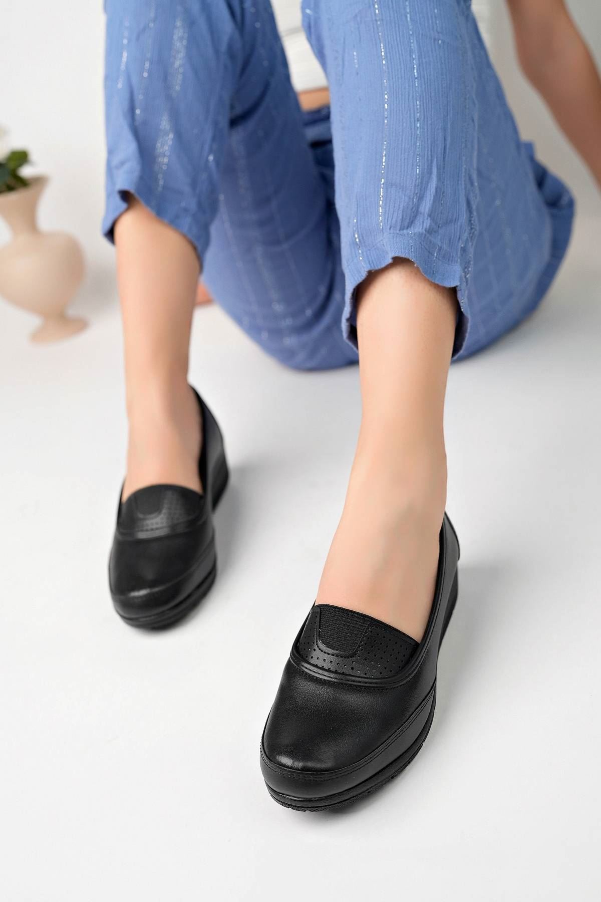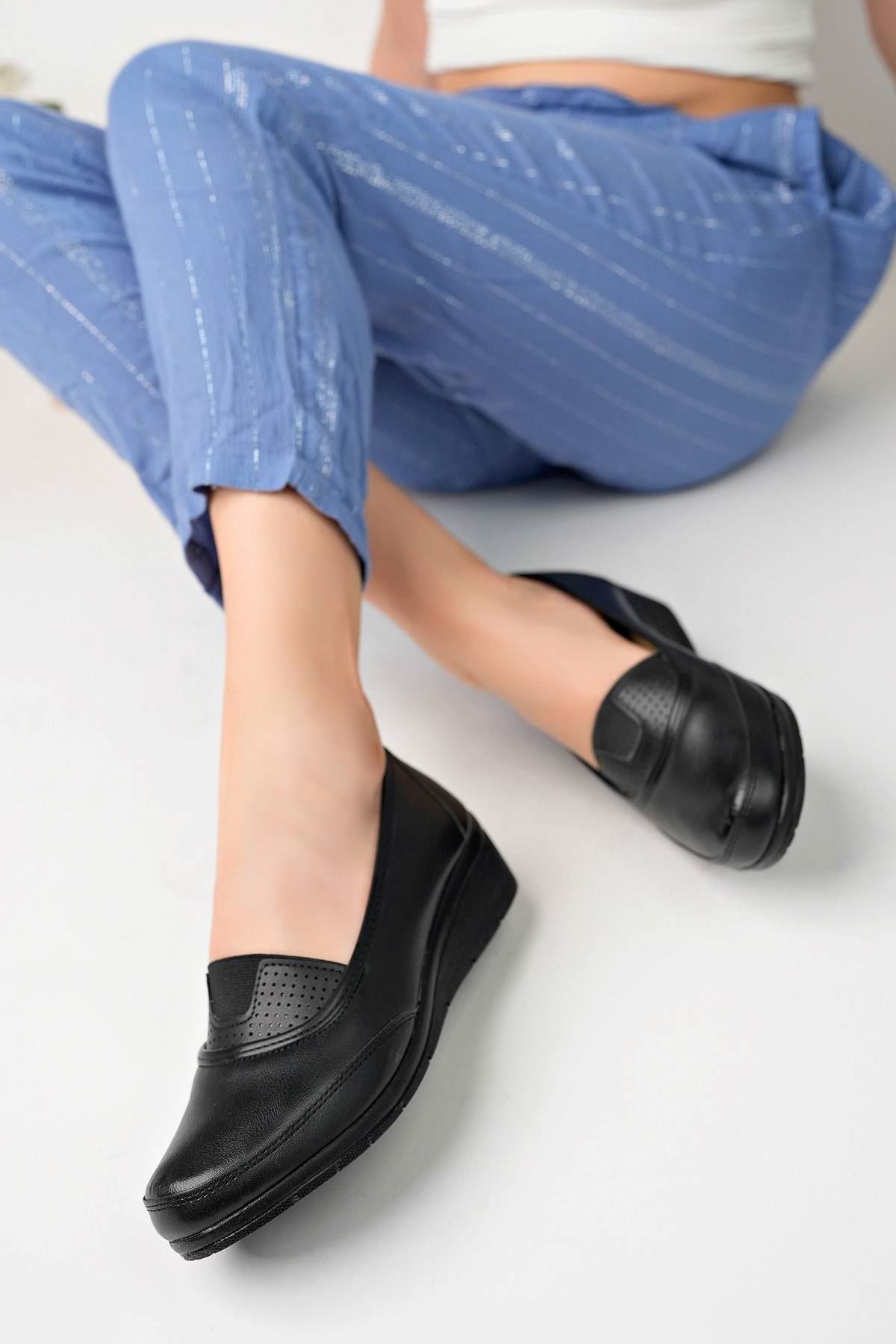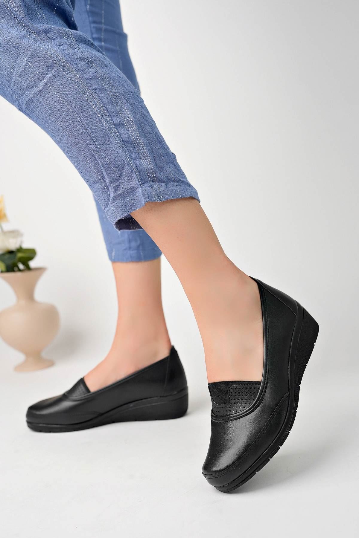 Dolgu Taban Ortopedik Siyah Ayakkabı