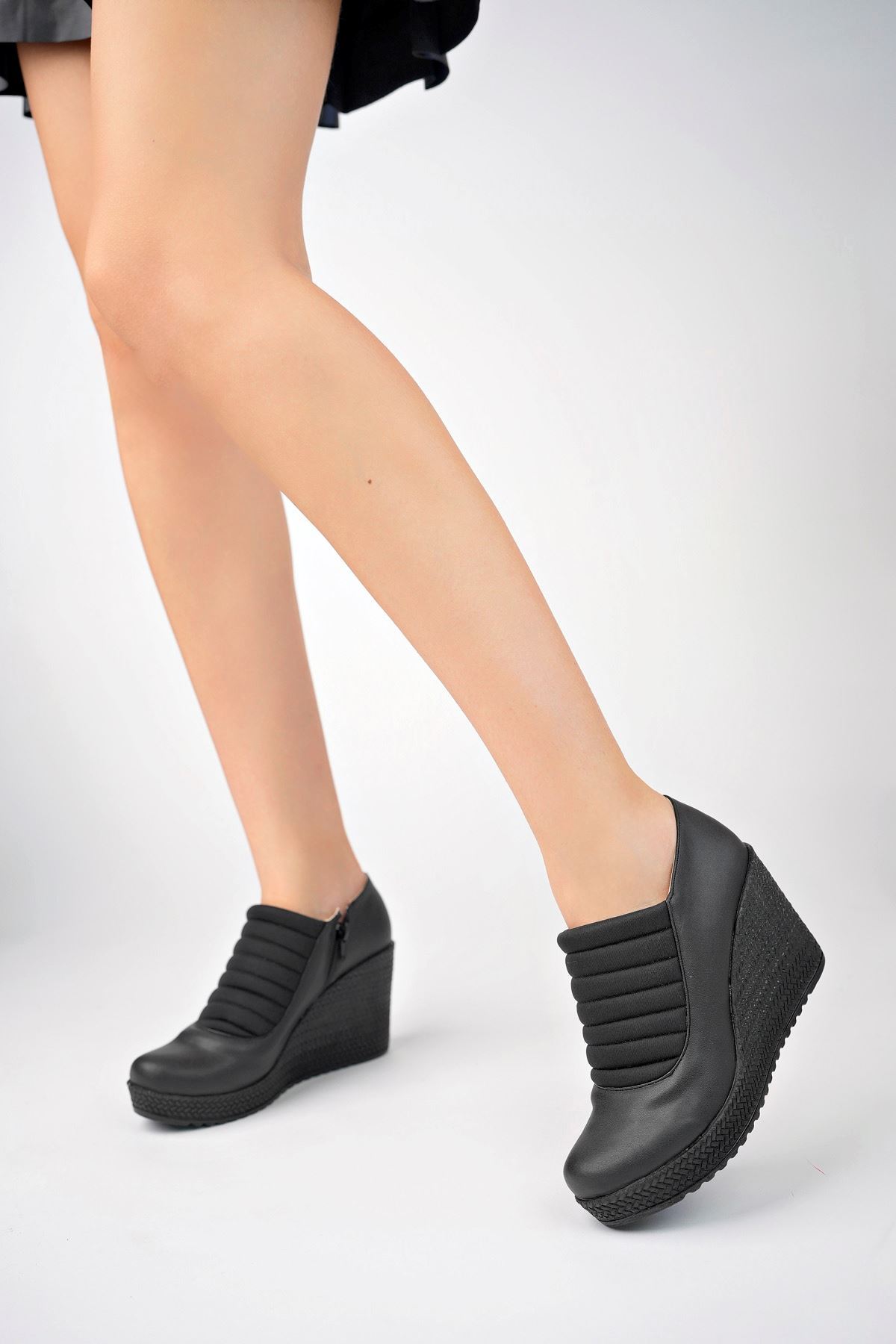 Dolgu Taban Siyah Cilt Kadın Ayakkabı
