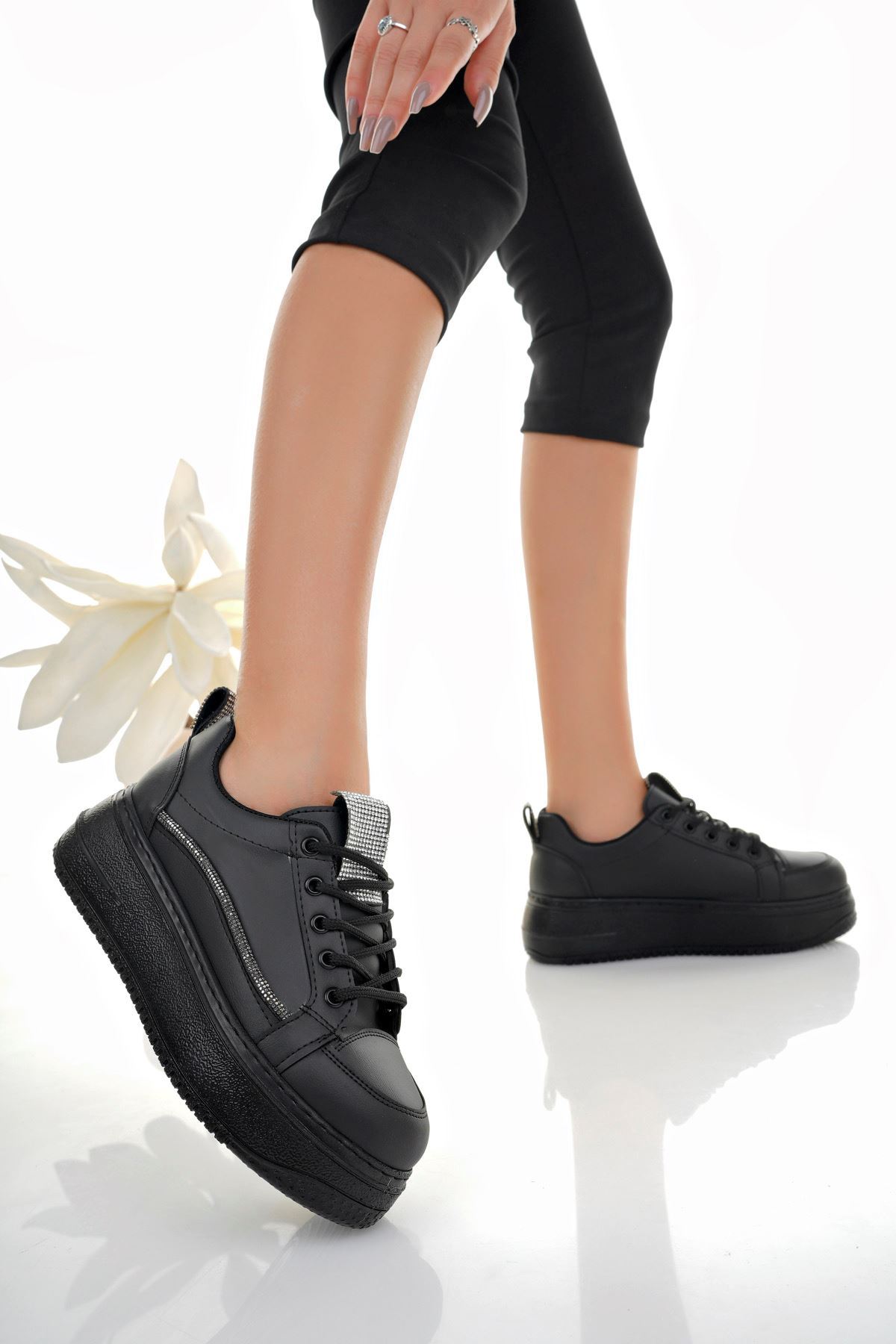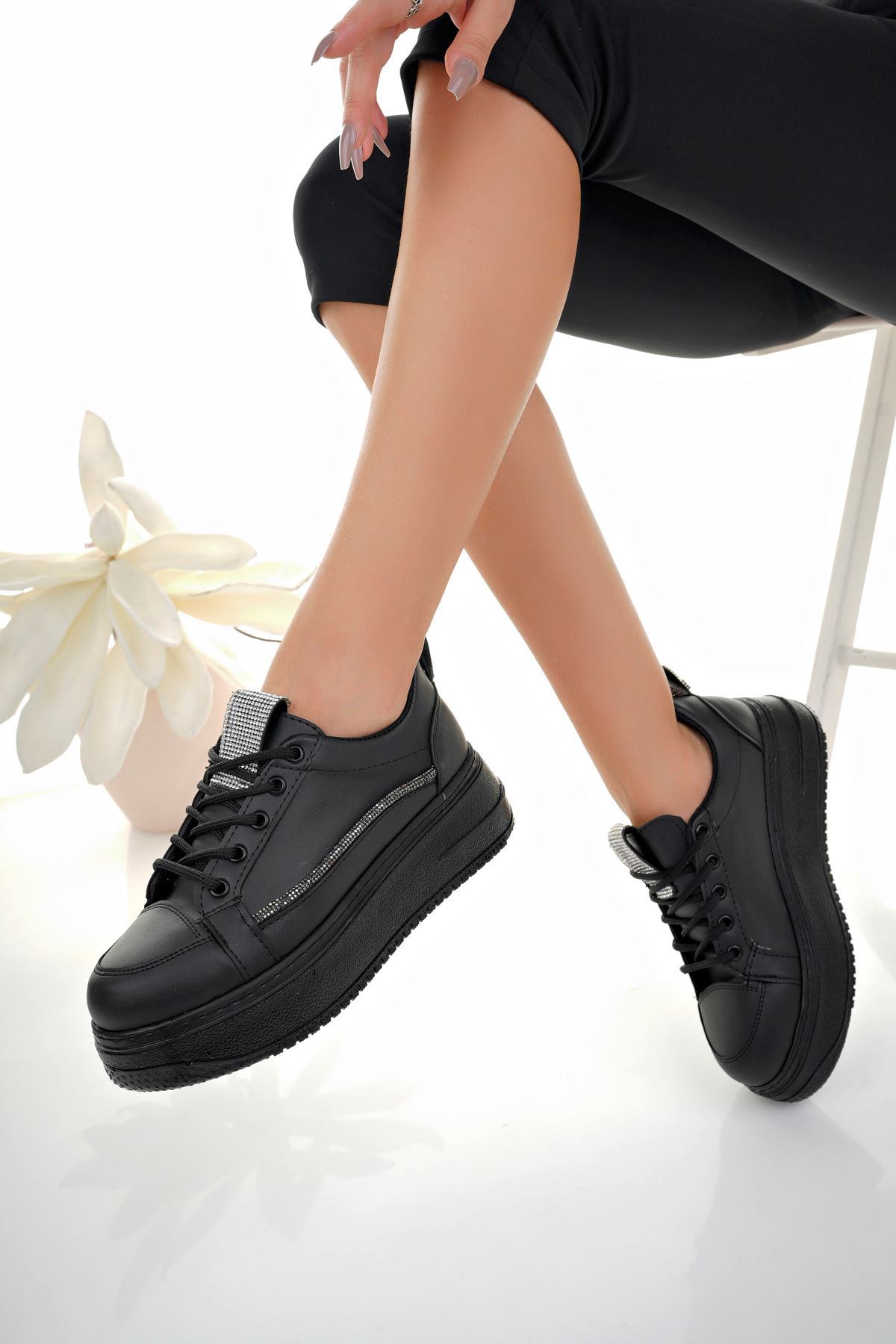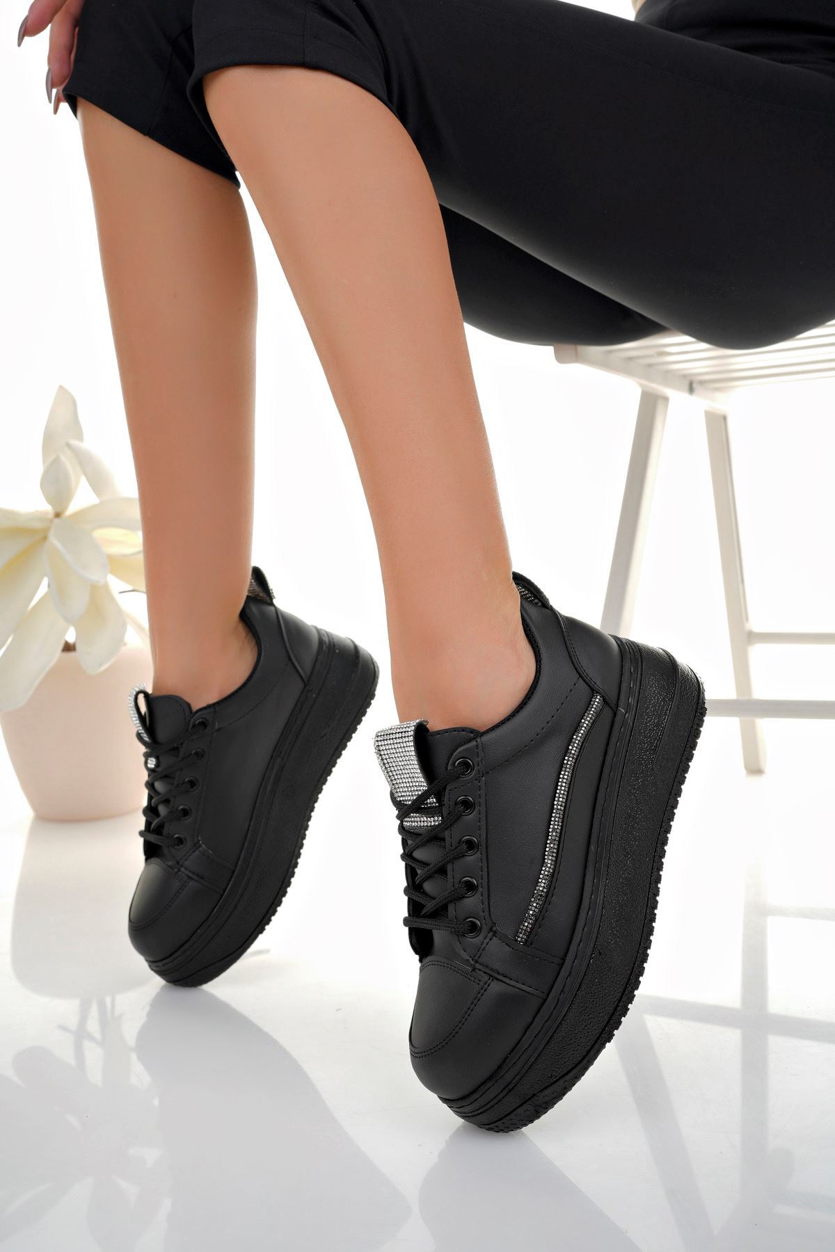Dolgu Taban Taşlı Siyah Kadın Ayakkabı