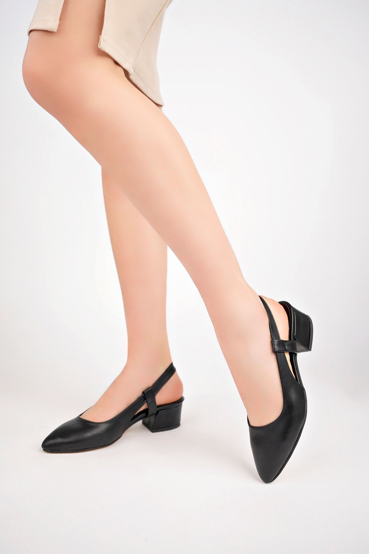 Dolgu Topuk Arkası Açık Siyah Cilt Kadın Ayakkabı