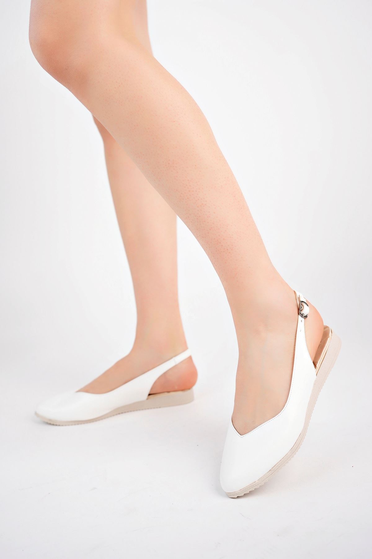 Dolgu Topuk Arkası Açık Krem Cilt Kadın Ayakkabı