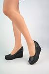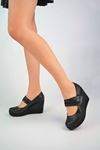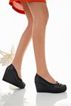 Dolgu Topuk Biyeli Siyah Cilt Ayakkabı