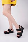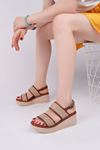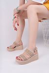 Dolgu Topuk Çift Bant Bej Kadın Ayakkabı