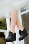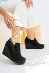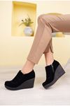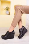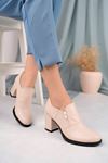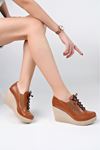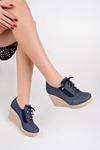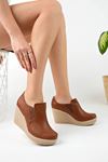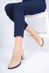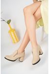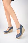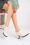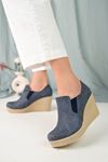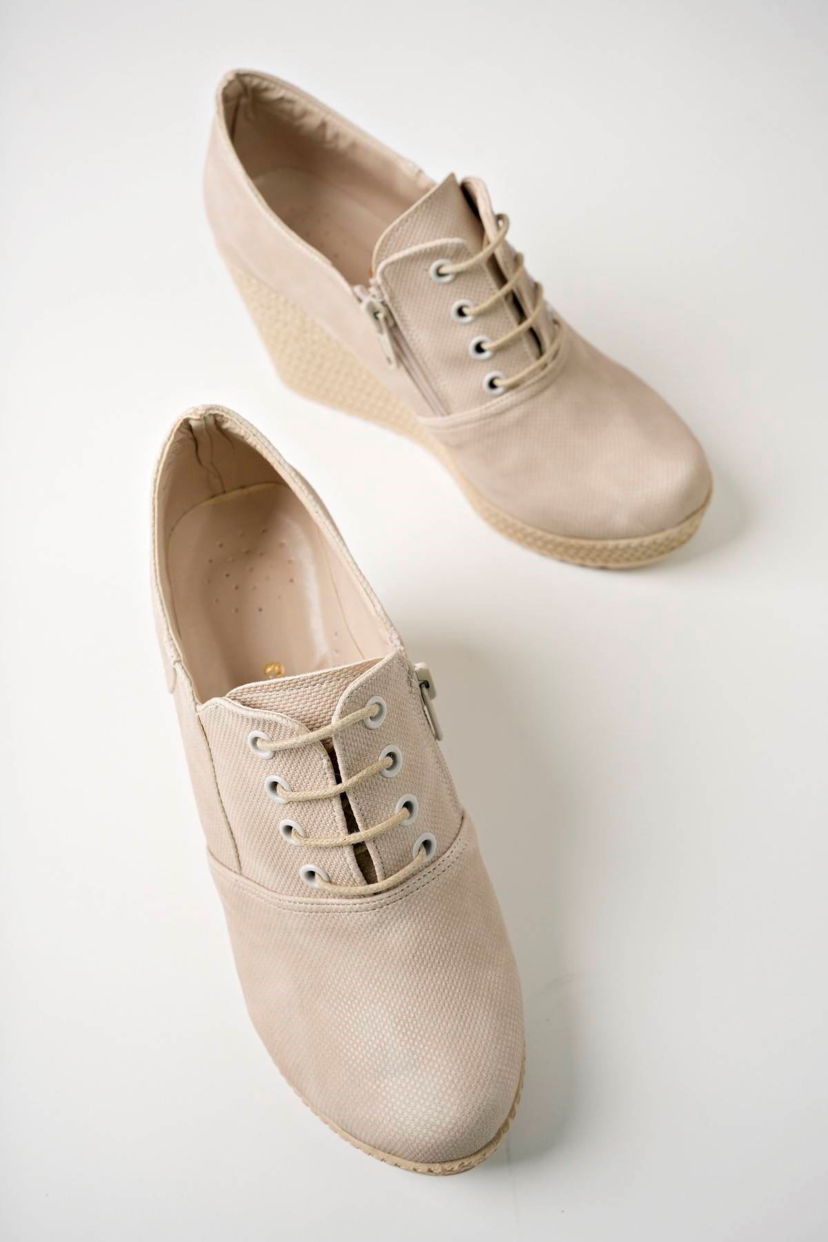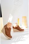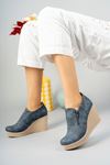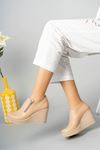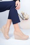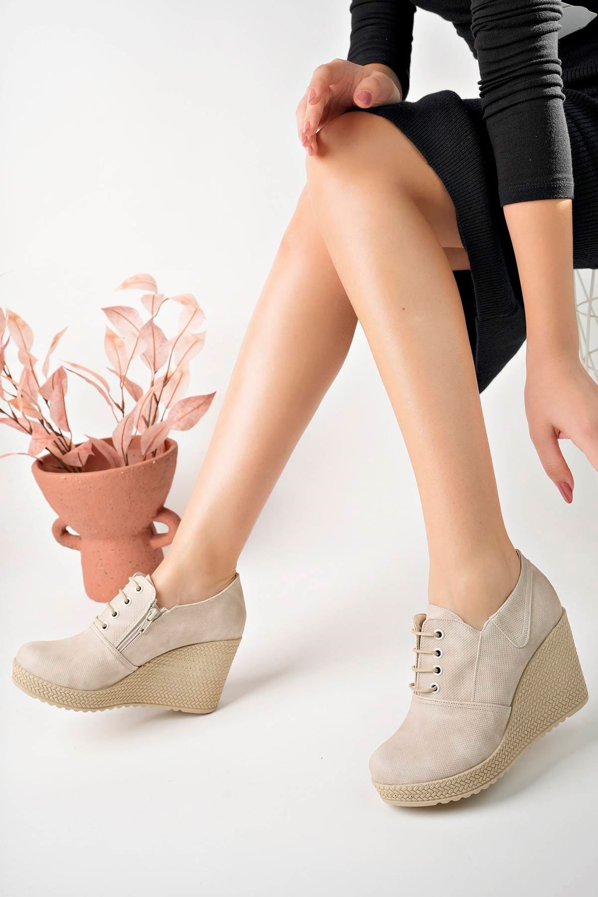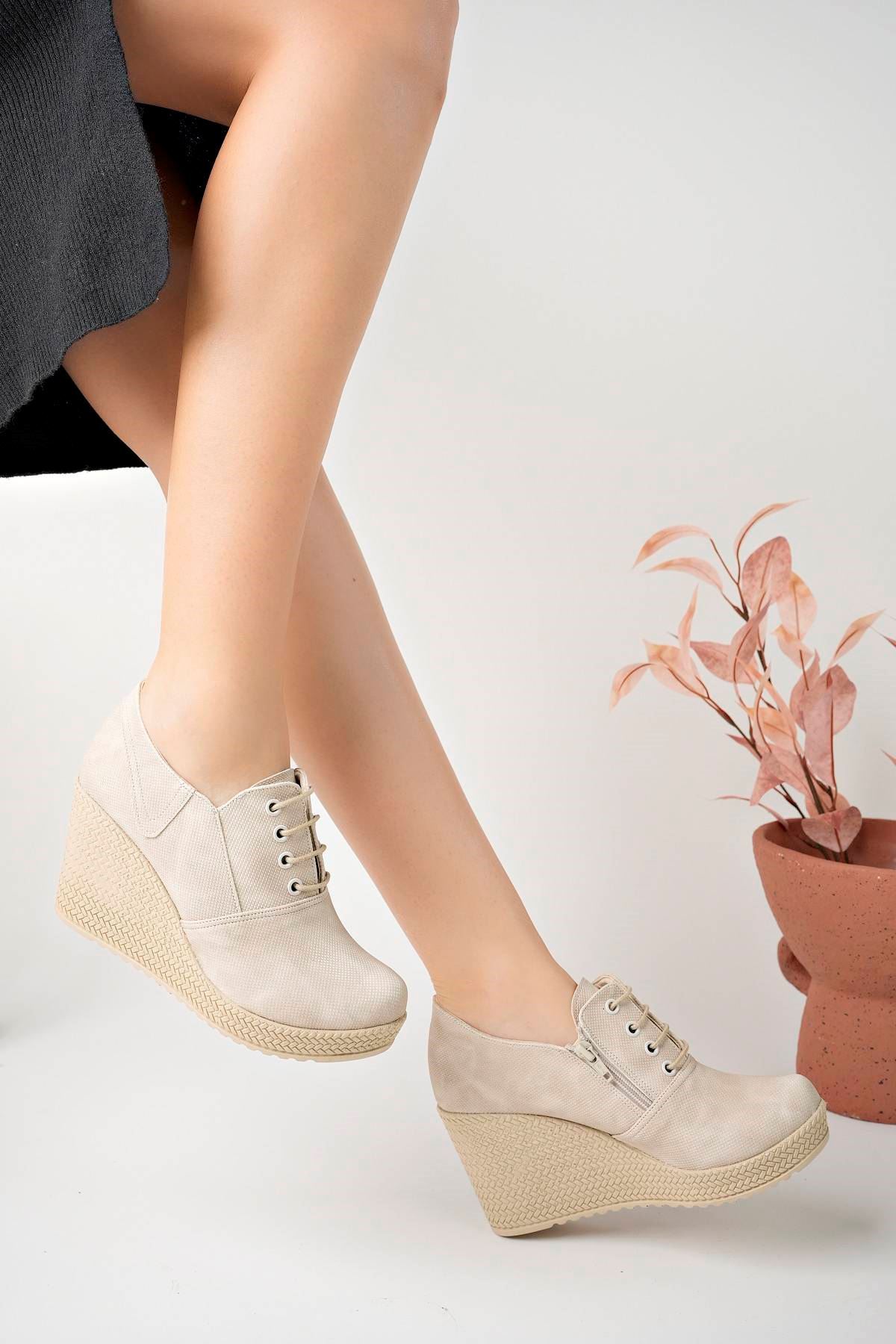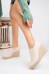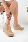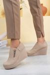 Dolgu Topuk Fermuarlı Krem Kot Kadın Ayakkabı
