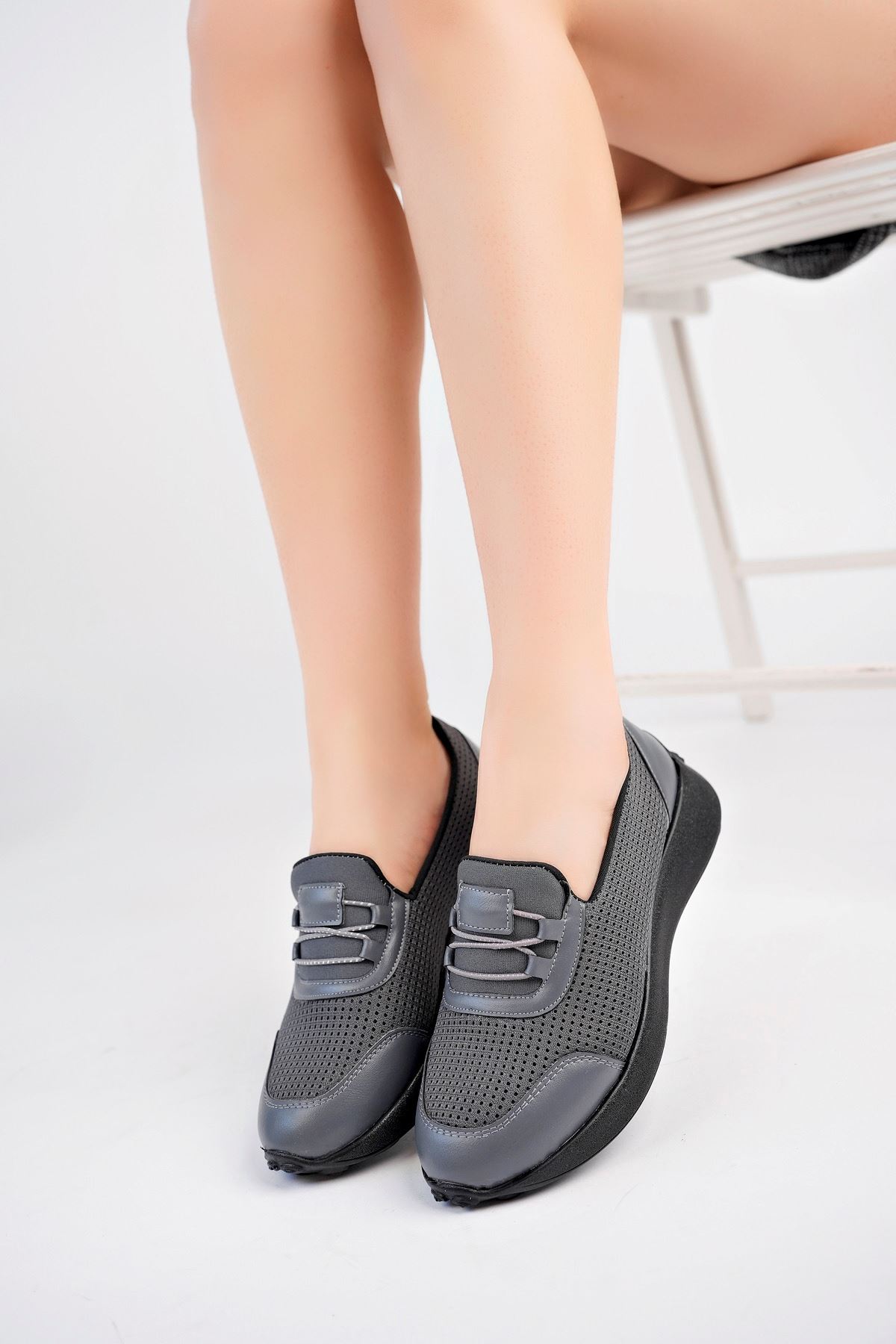 Dolgu Topuk Örgülü Beyaz Ayakkabı