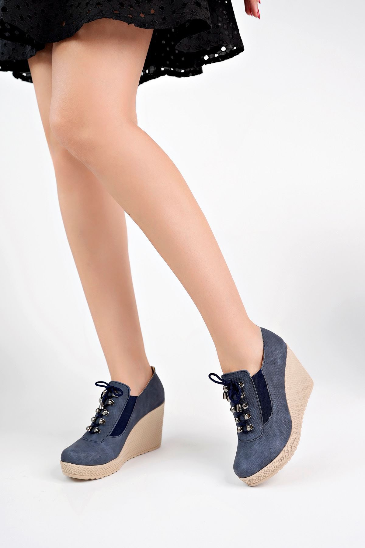 Dolgu Topuk Kancalı Lacivert Kot Kadın Ayakkabı