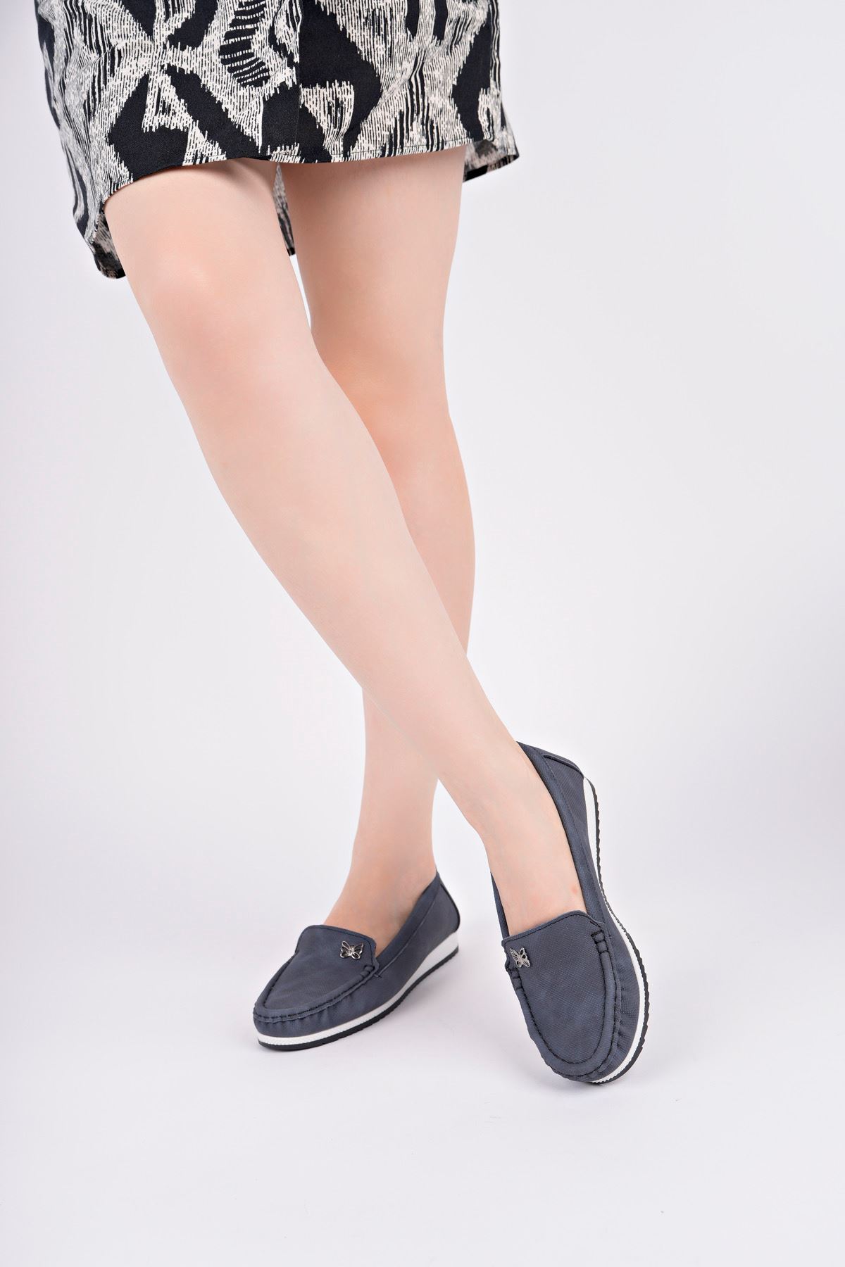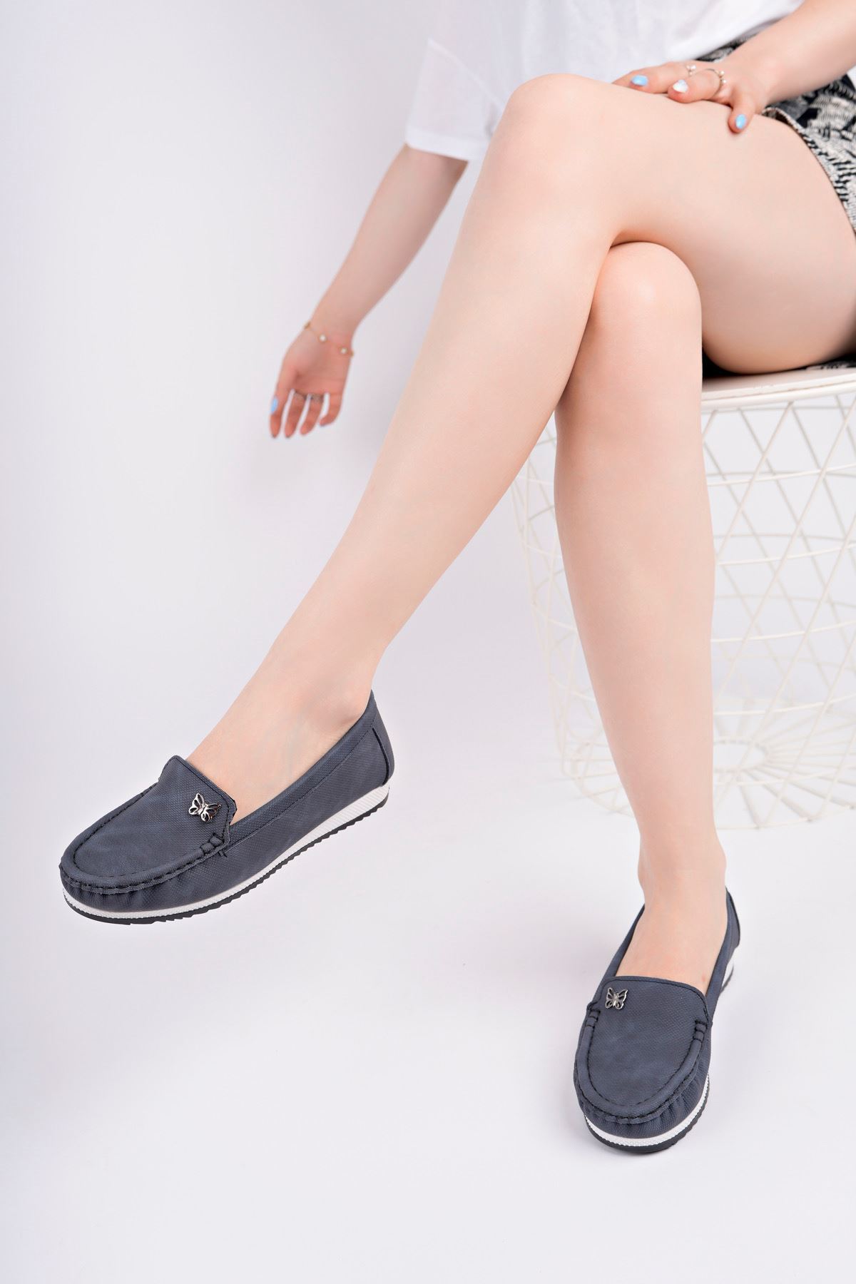 Dolgu Topuk Kelebekli Lacivert Kot Ayakkabı