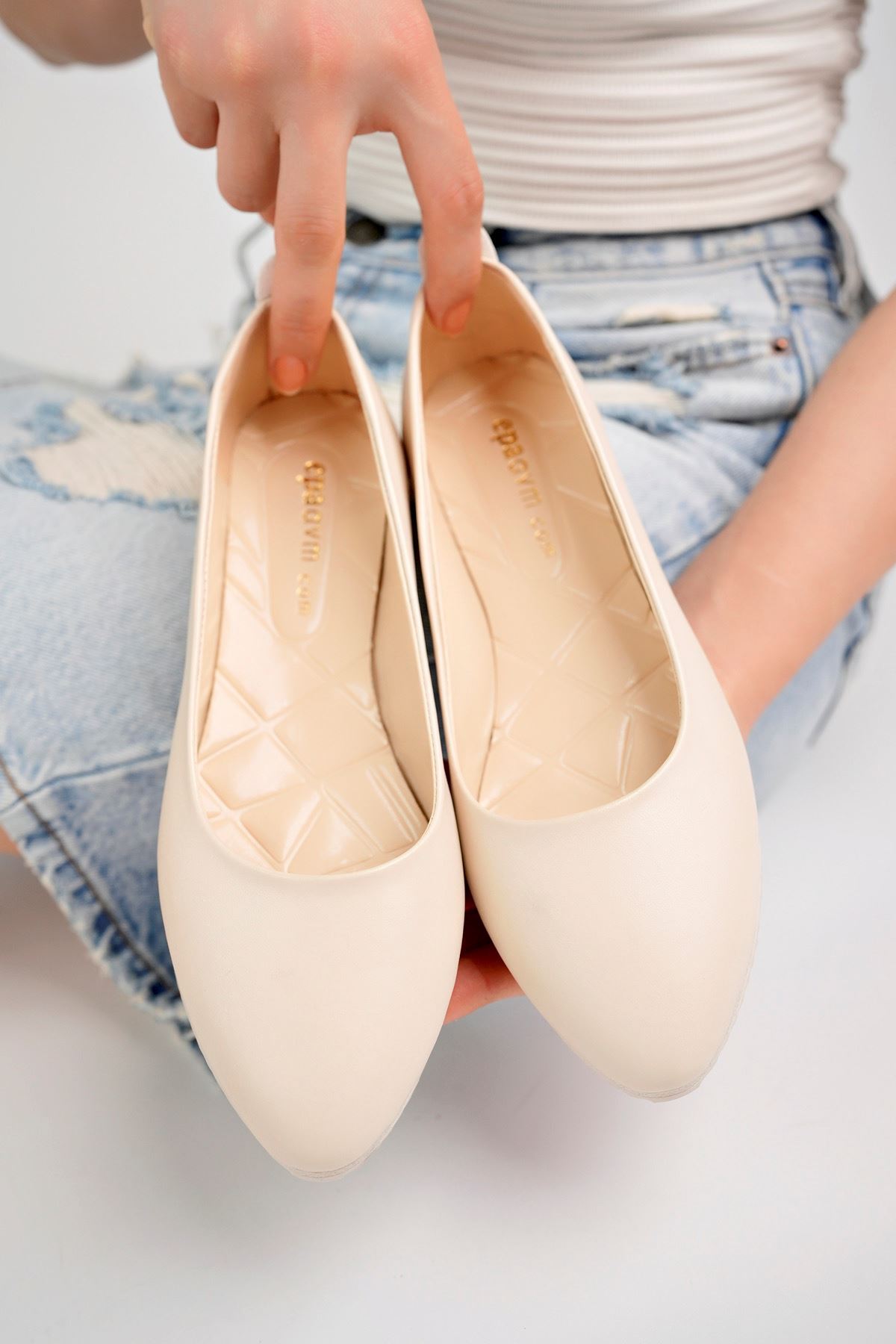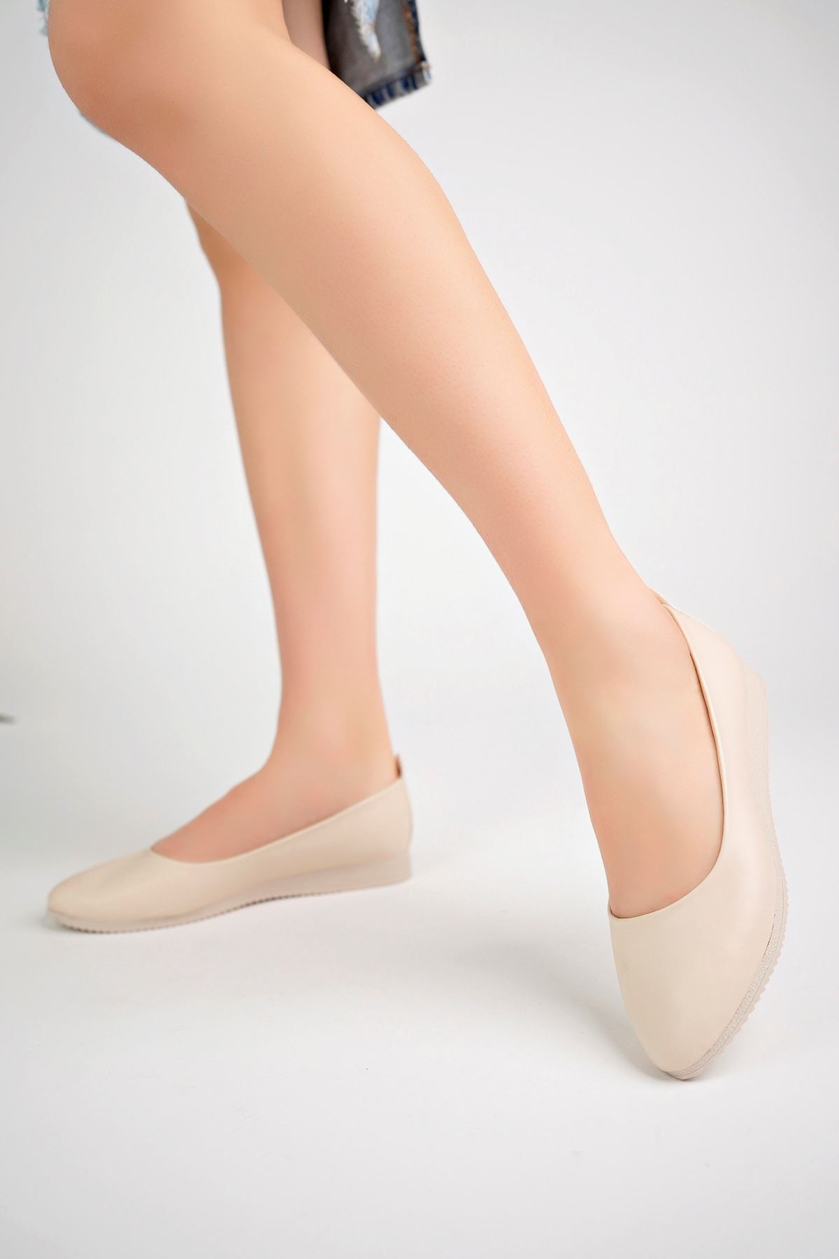Dolgu Topuk Krem Ayakkabı