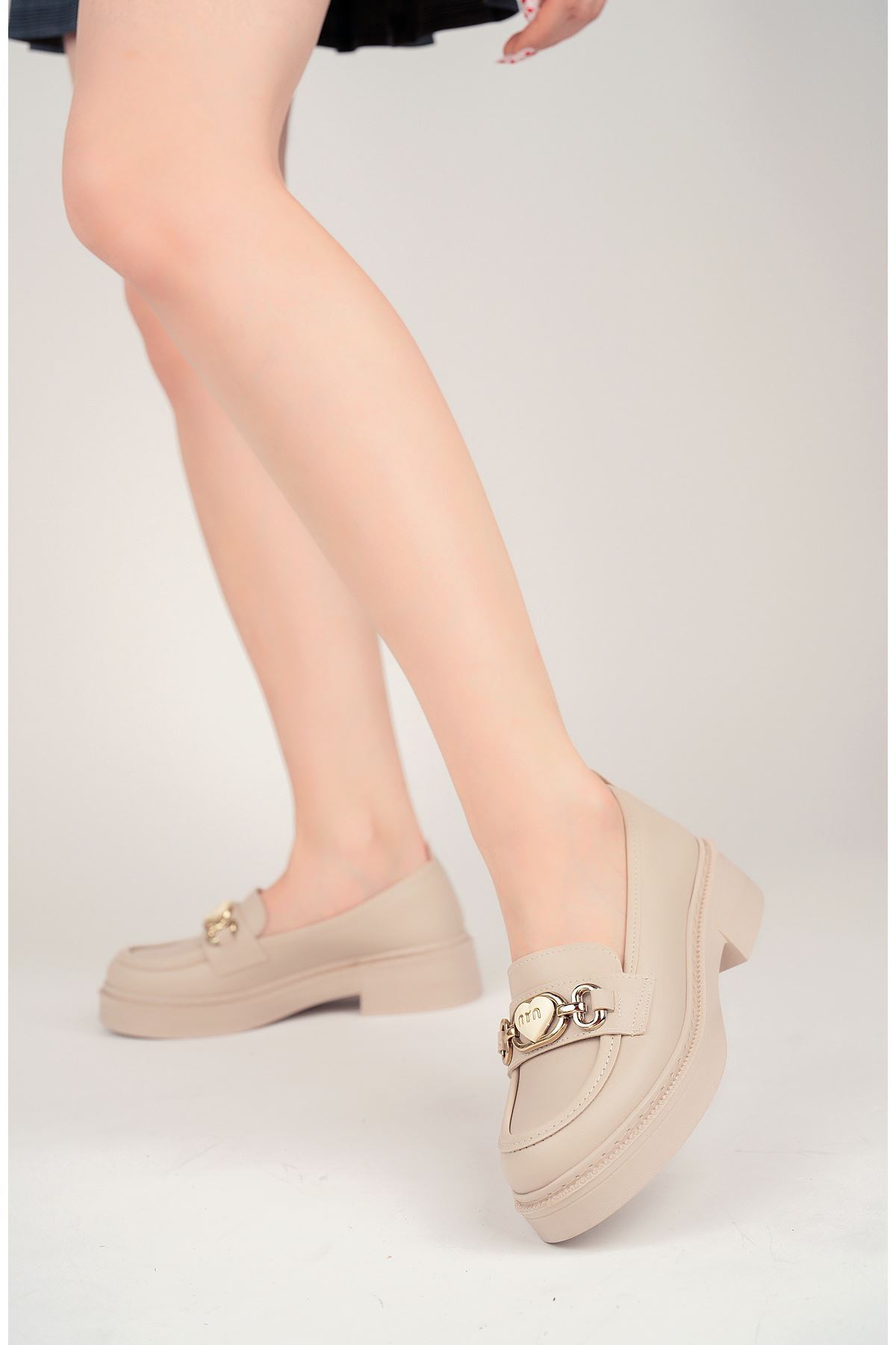 Dolgu Topuk Krem Cilt Kadın Ayakkabı