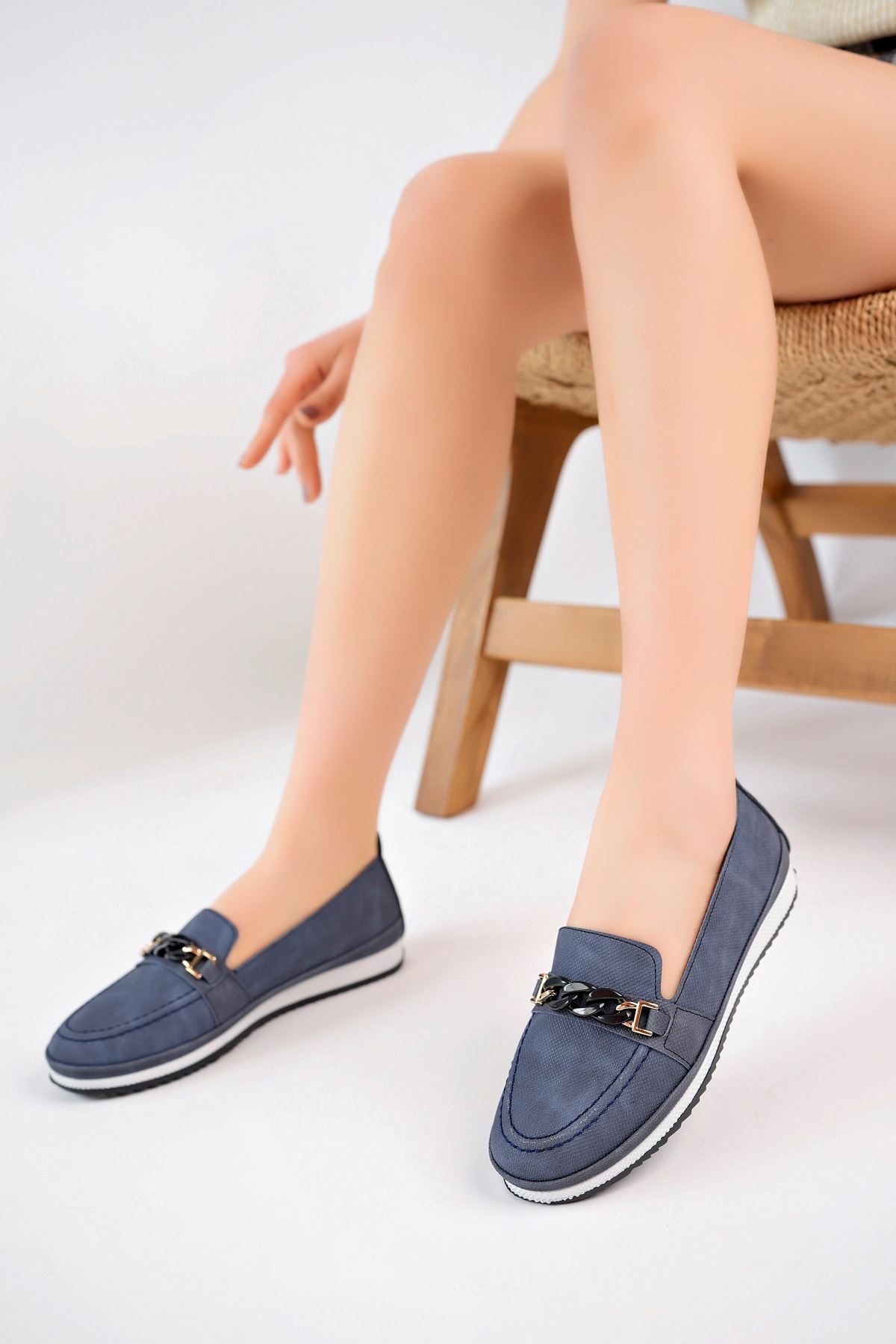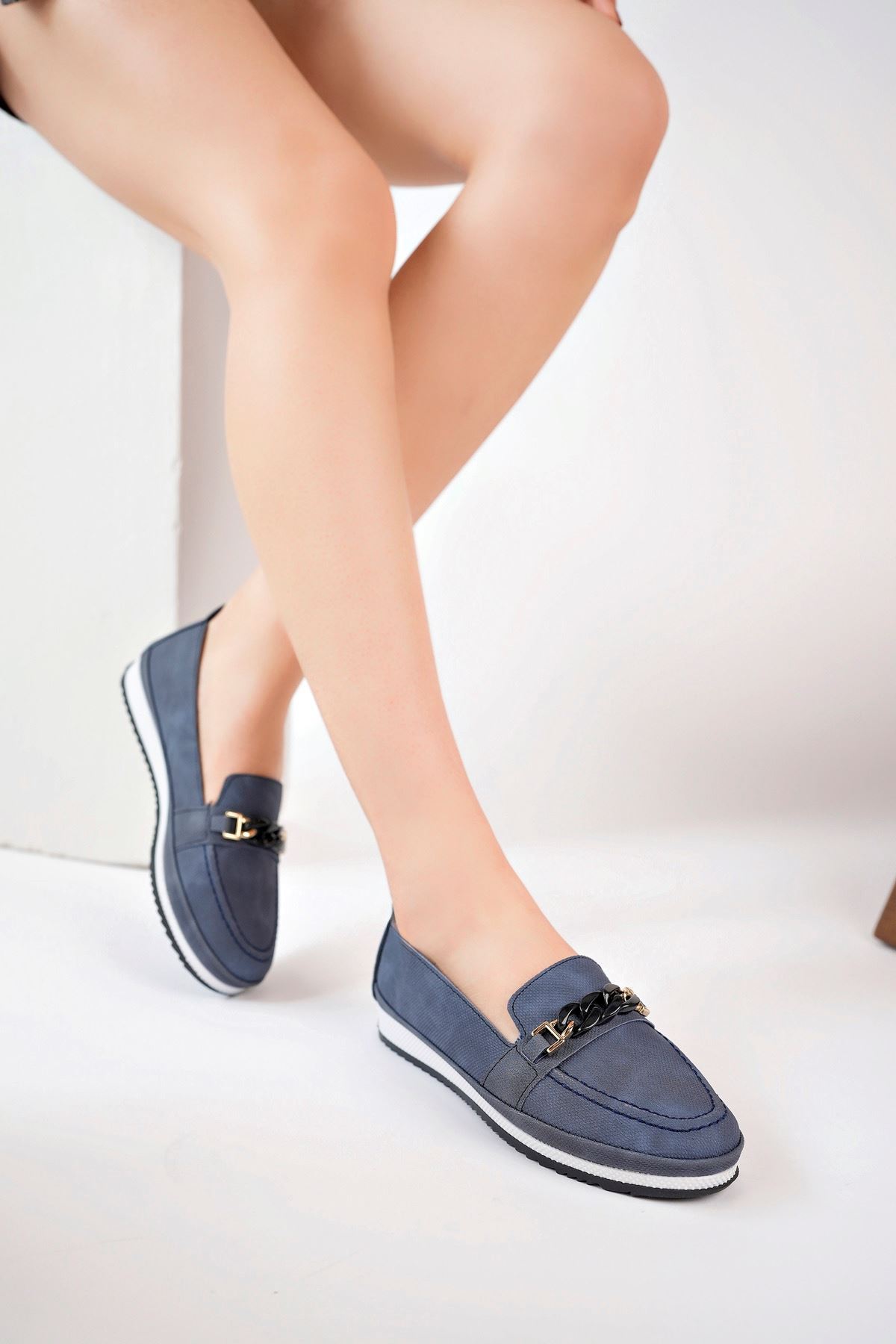 Dolgu Topuk Lacivert Kot Ayakkabı