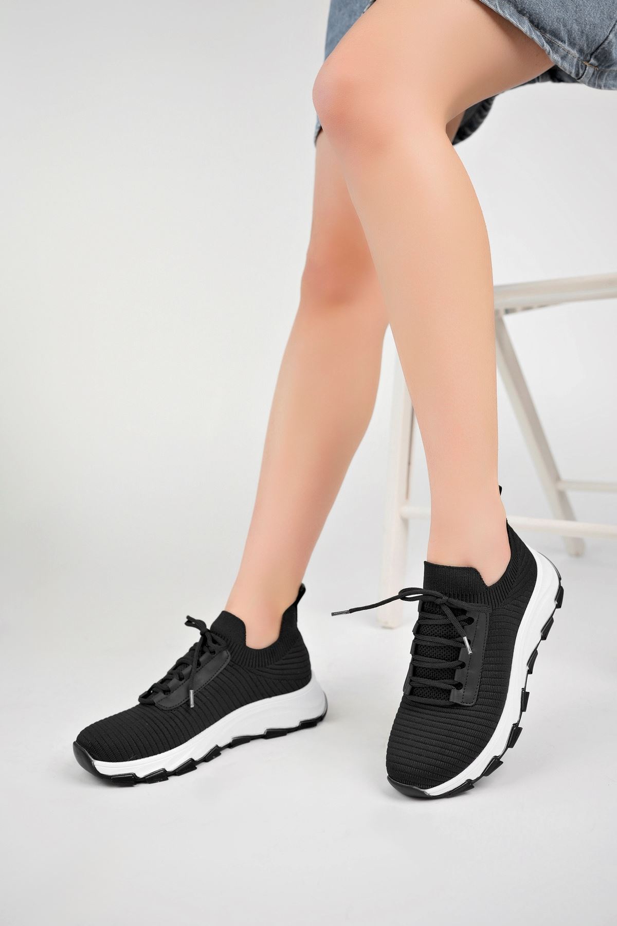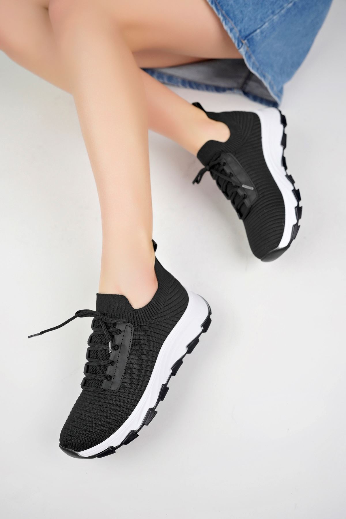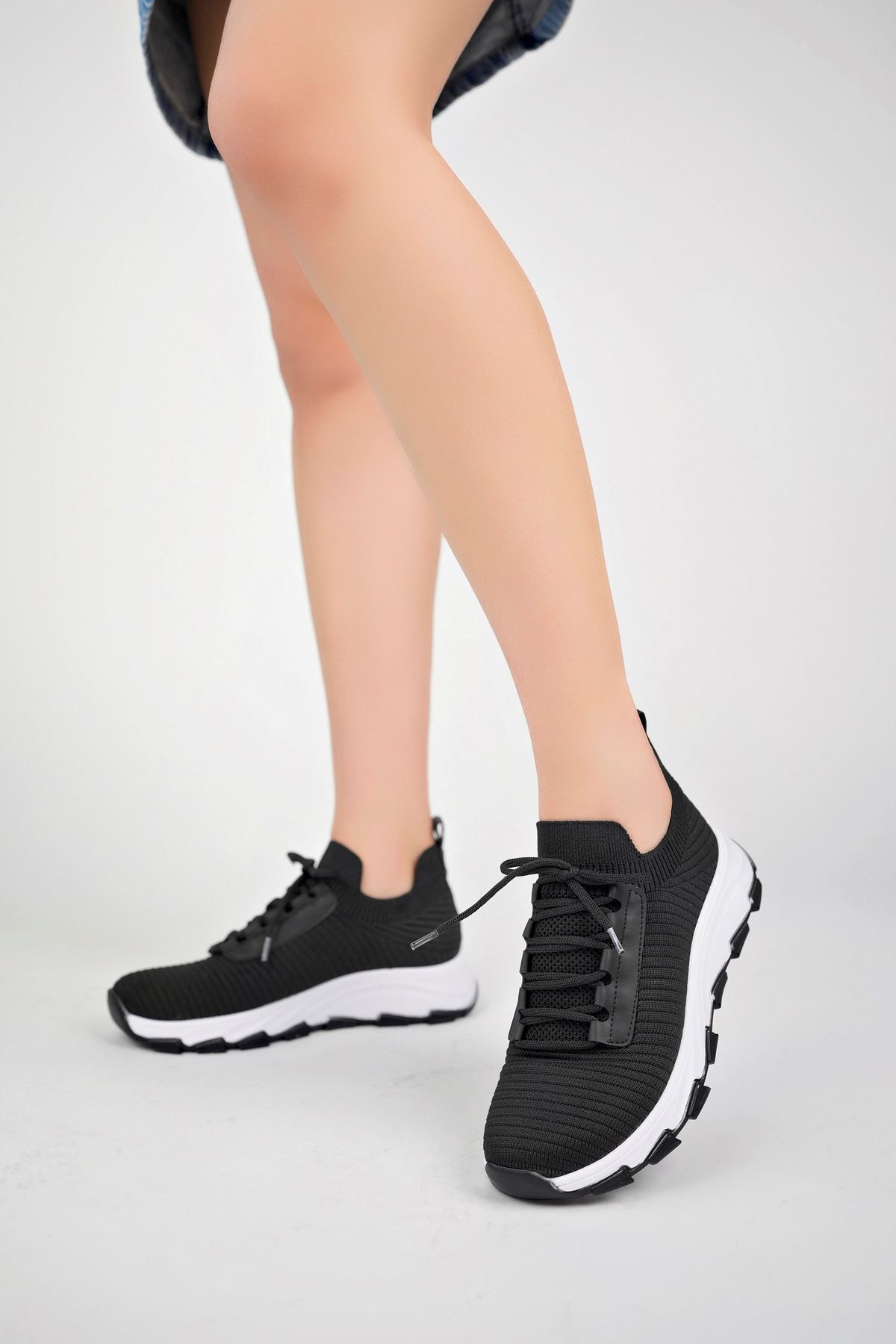 Dolgu Topuk Örgü Siyah Ayakkabı