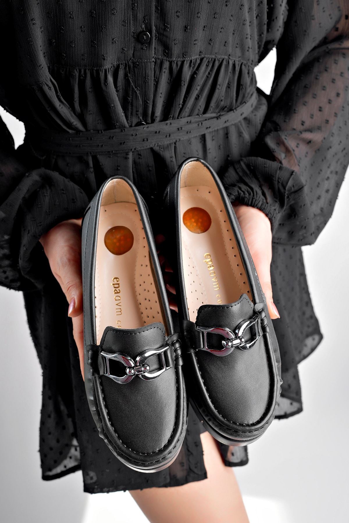 Dolgu Topuk Ortapedik Pedli Siyah Cilt Kadın Ayakkabı