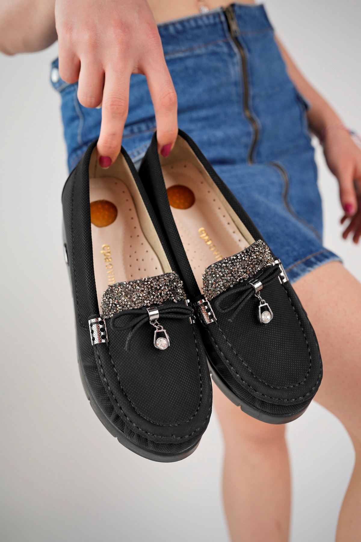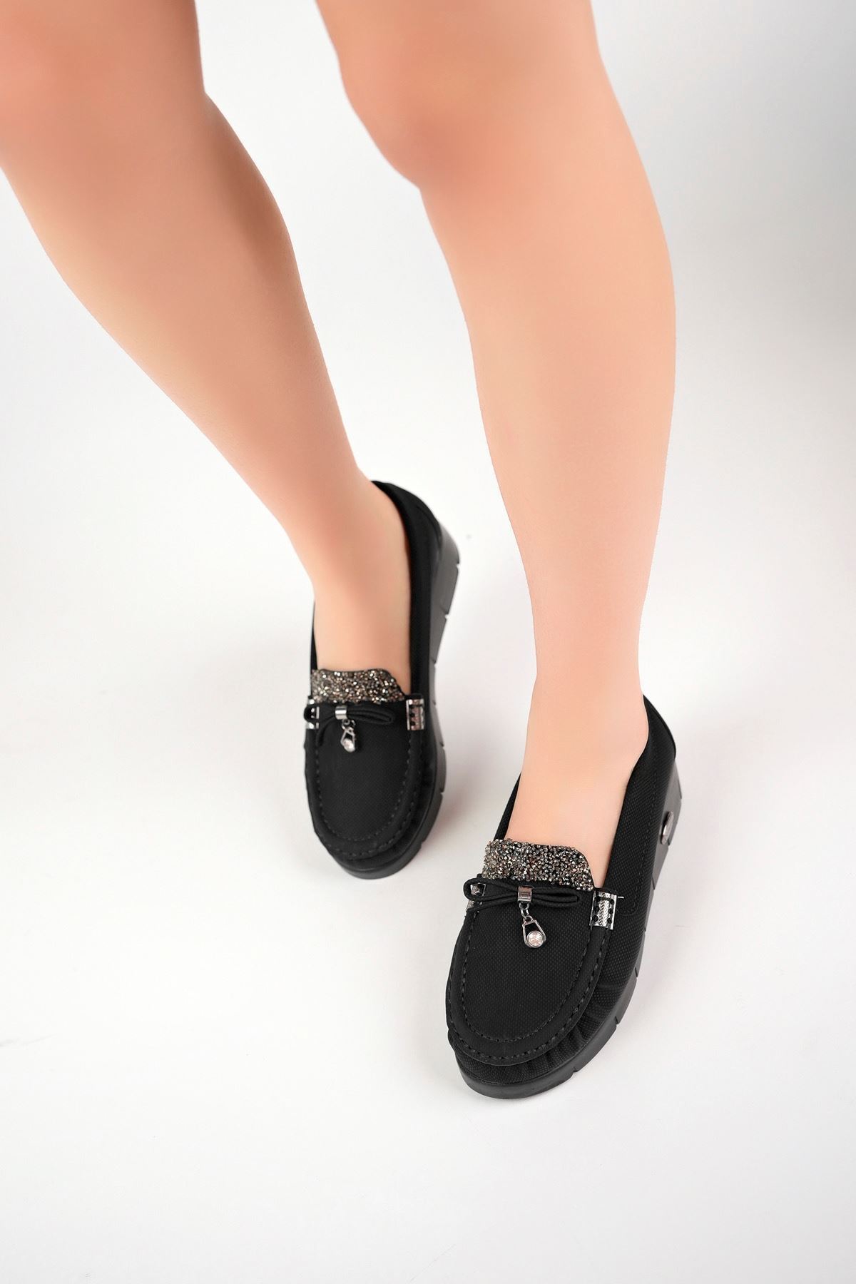 Dolgu Topuk Ortopedik Pedli Siyah Kot Kadın Ayakkabı