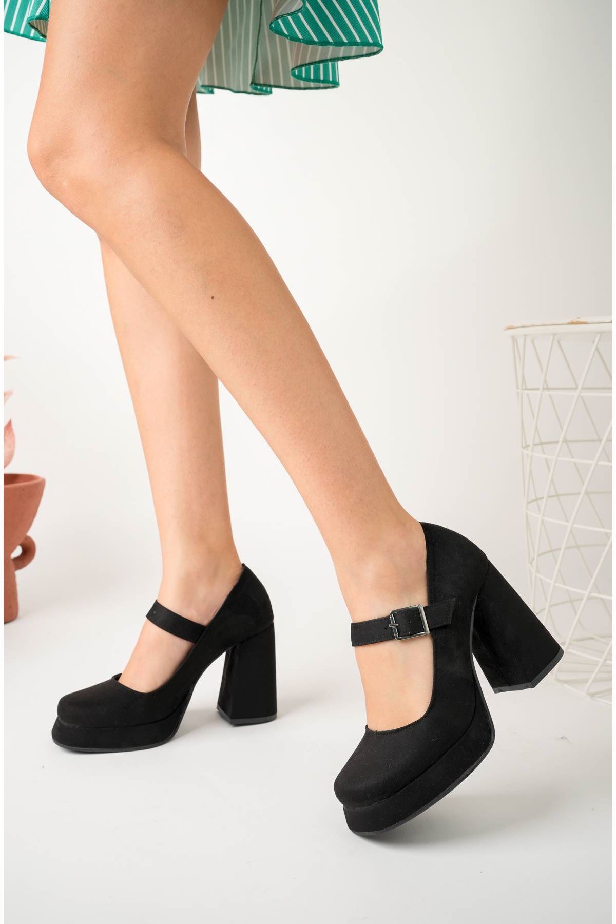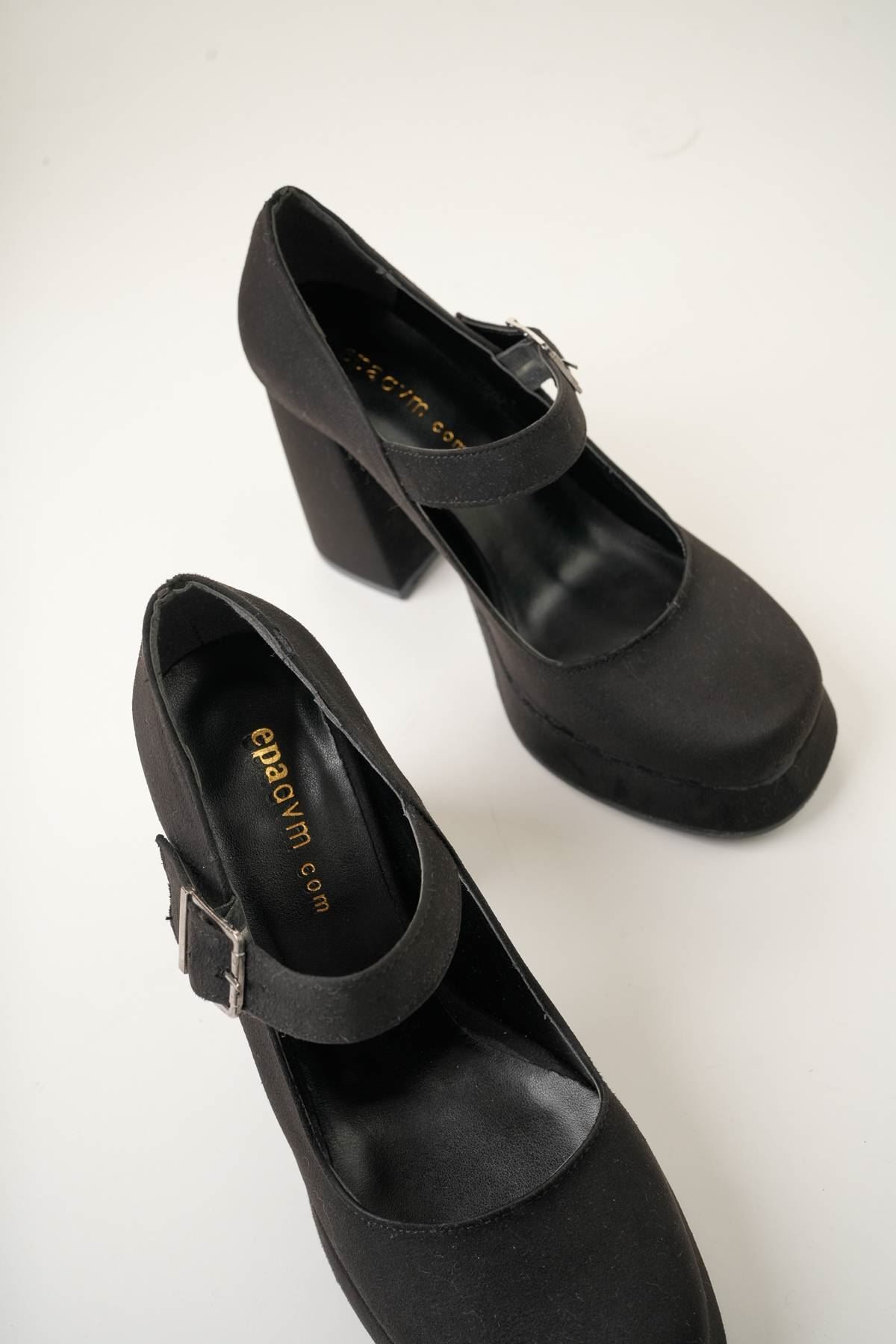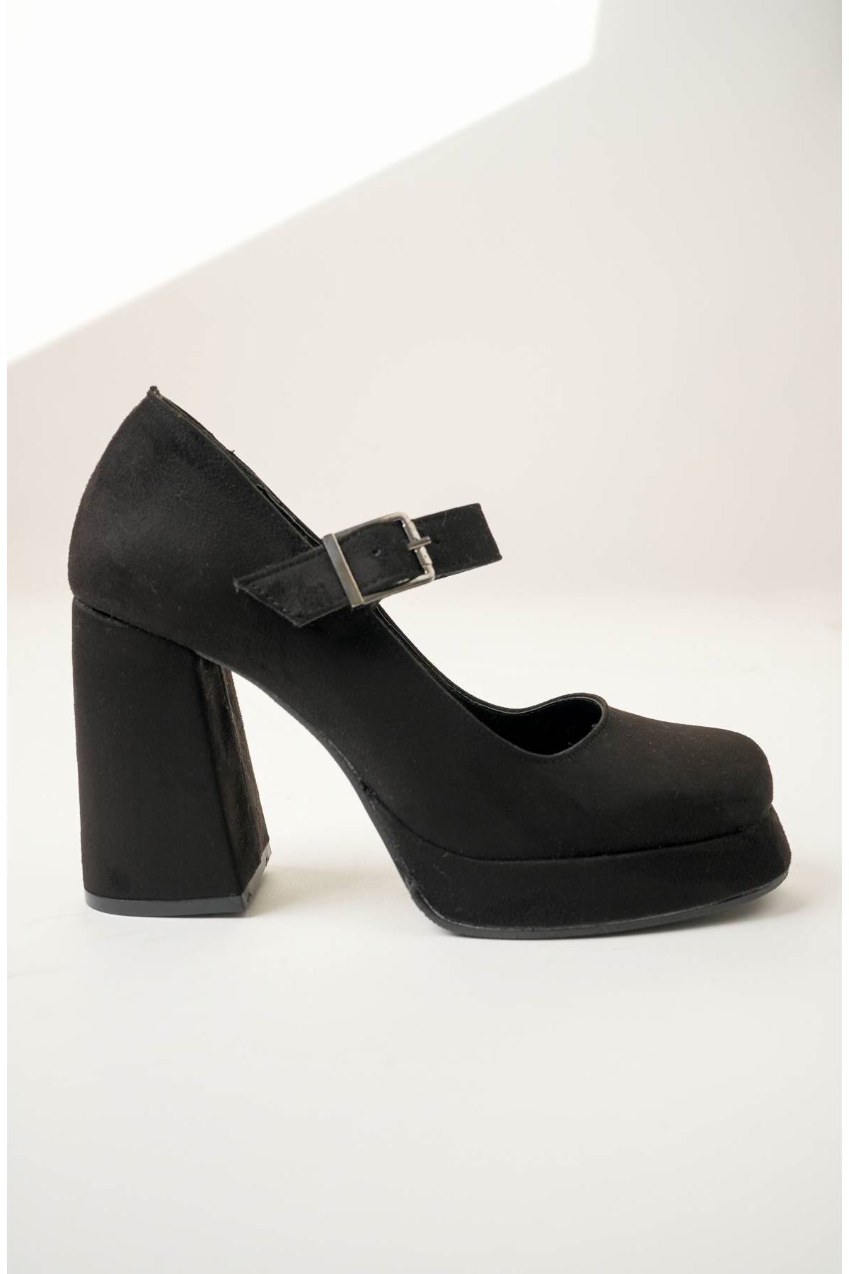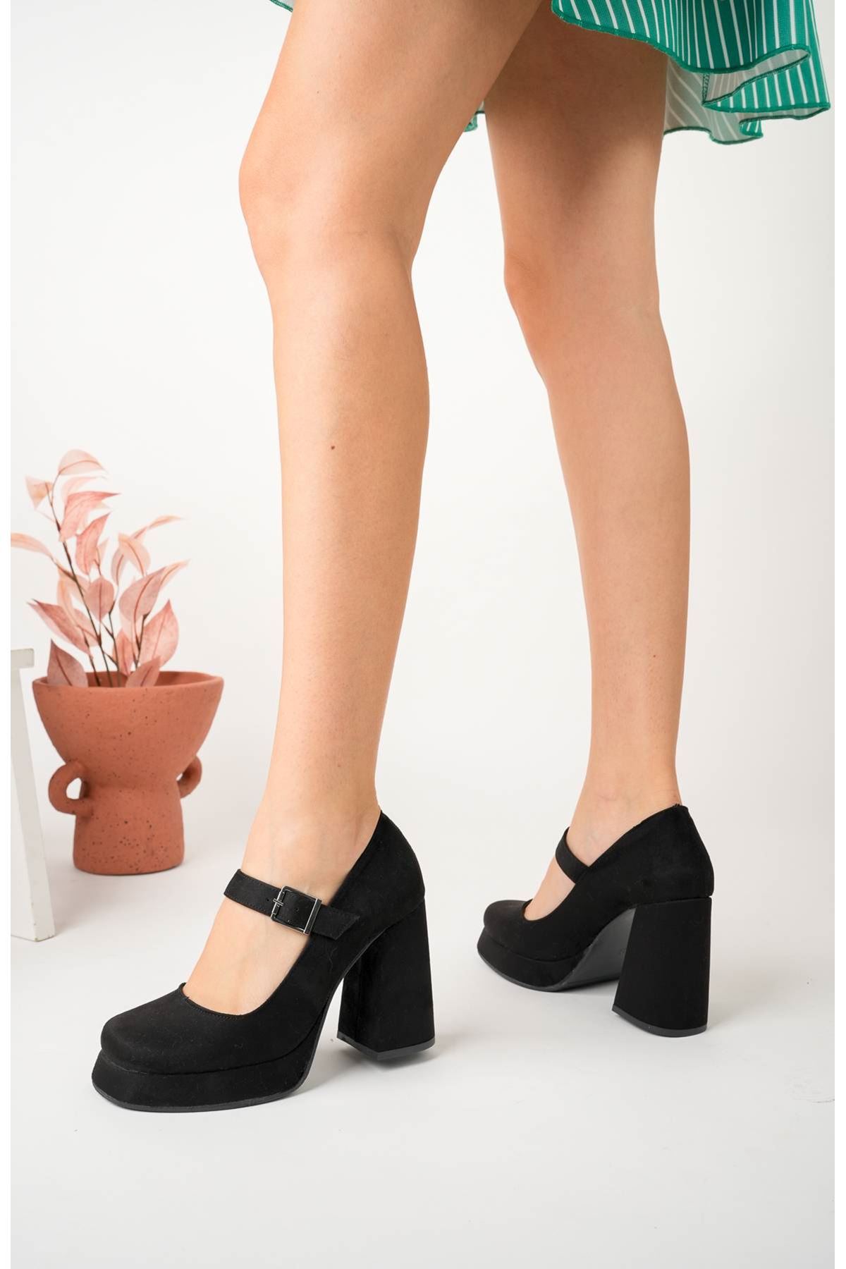 Dolgu Topuk Platform Siyah Süet Kadın Ayakkabı