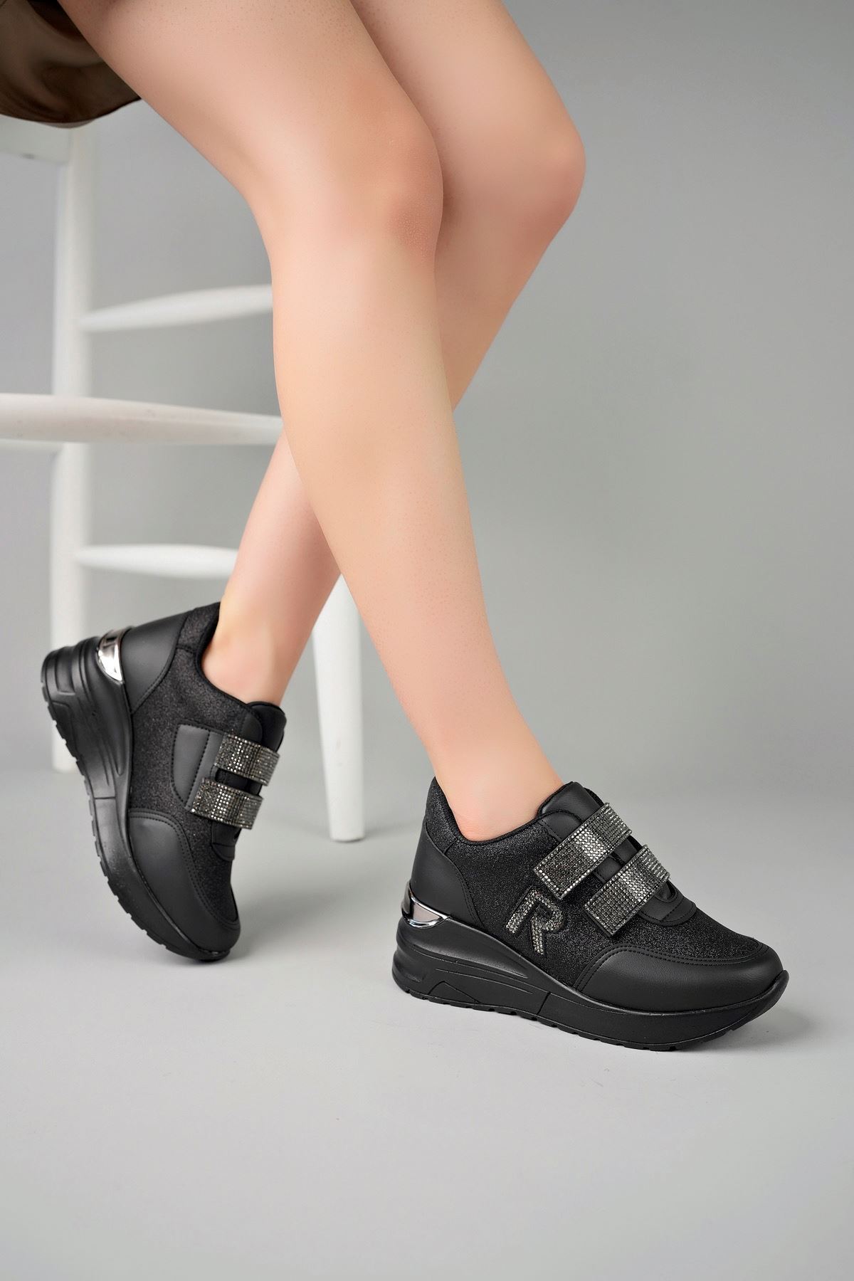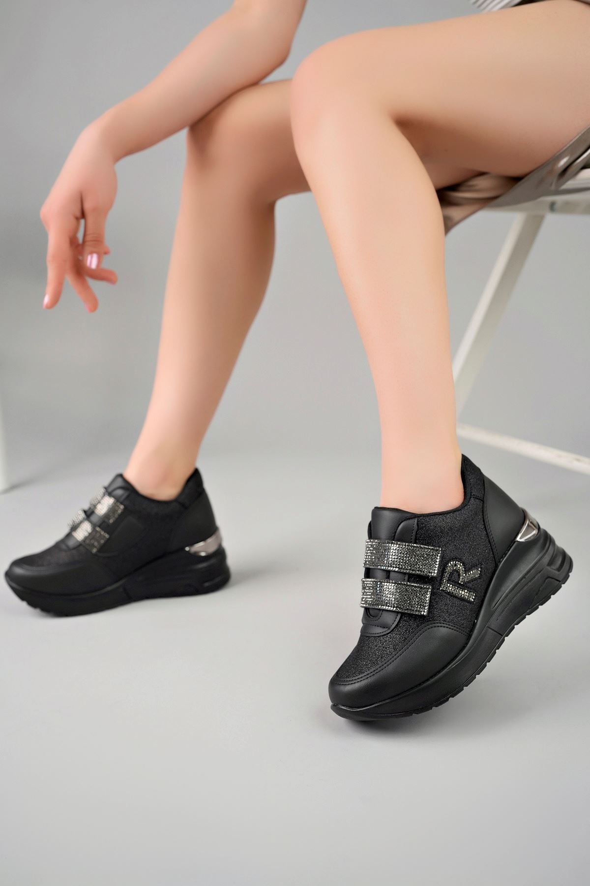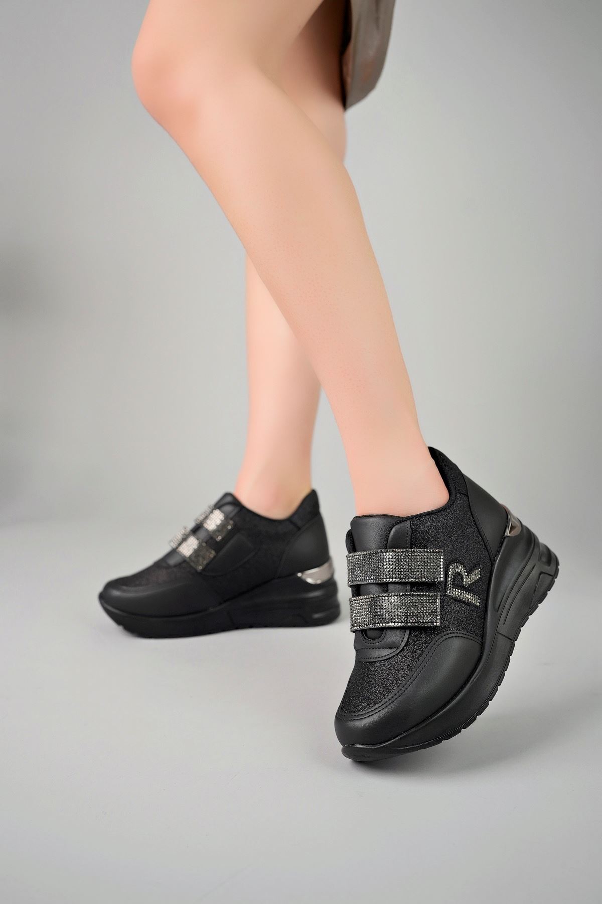 Dolgu Taban Taşlı Altın Kadın Ayakkabı