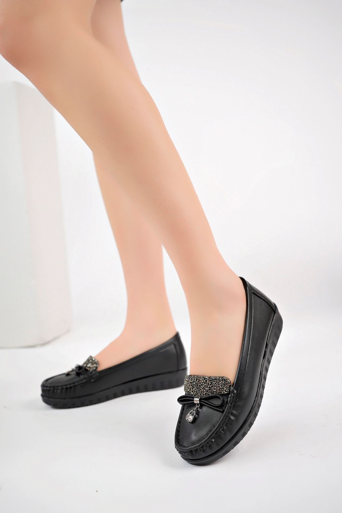 Ortopedik Pedli Lazerli Siyah Ayakkabı