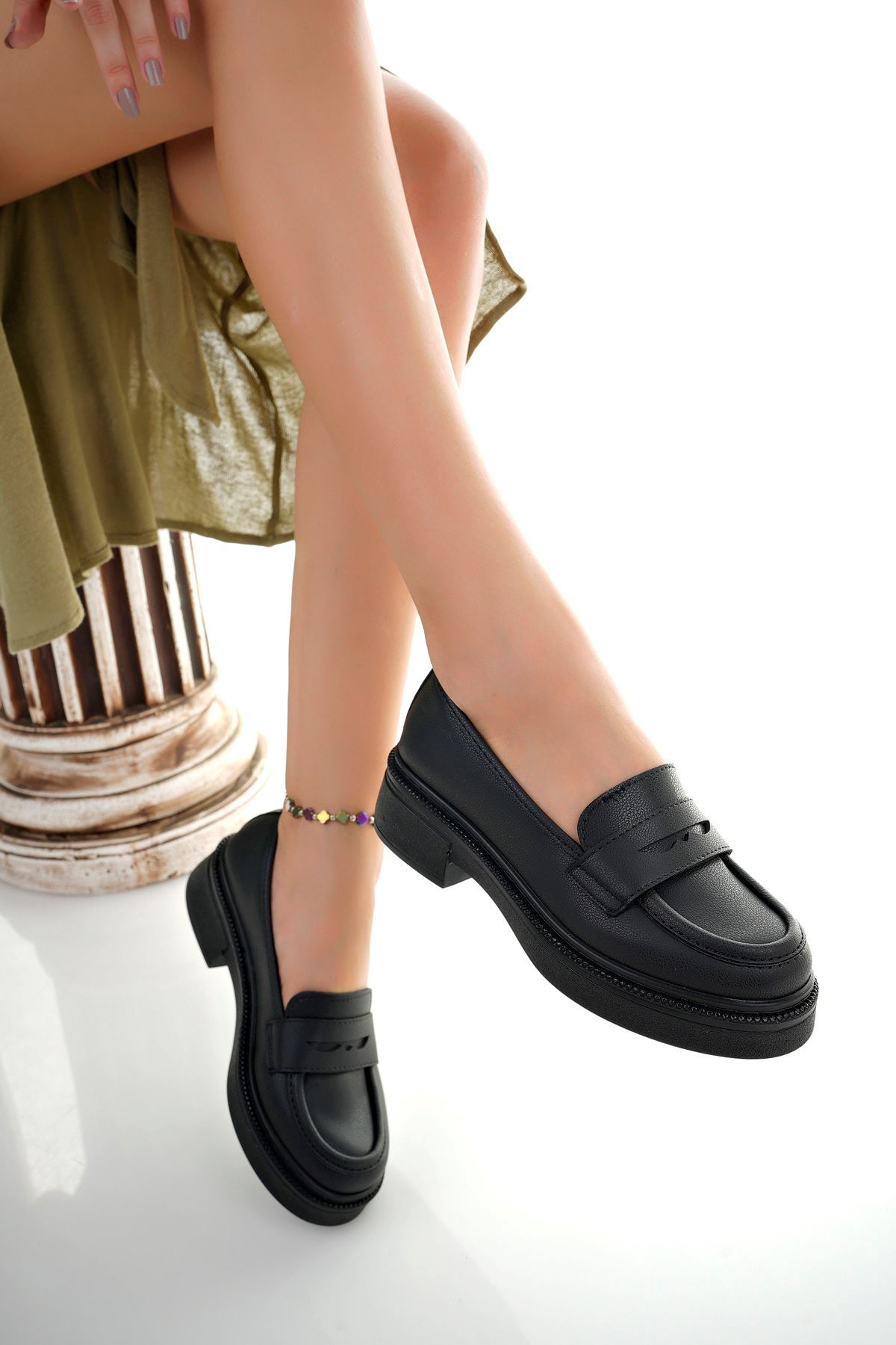 Dolgu Topuk Siyah Cilt Kadın Ayakkabı