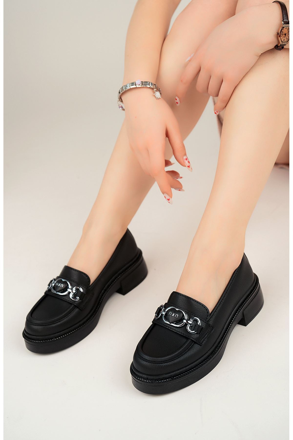 Dolgu Topuk Siyah Cilt Kadın Ayakkabı