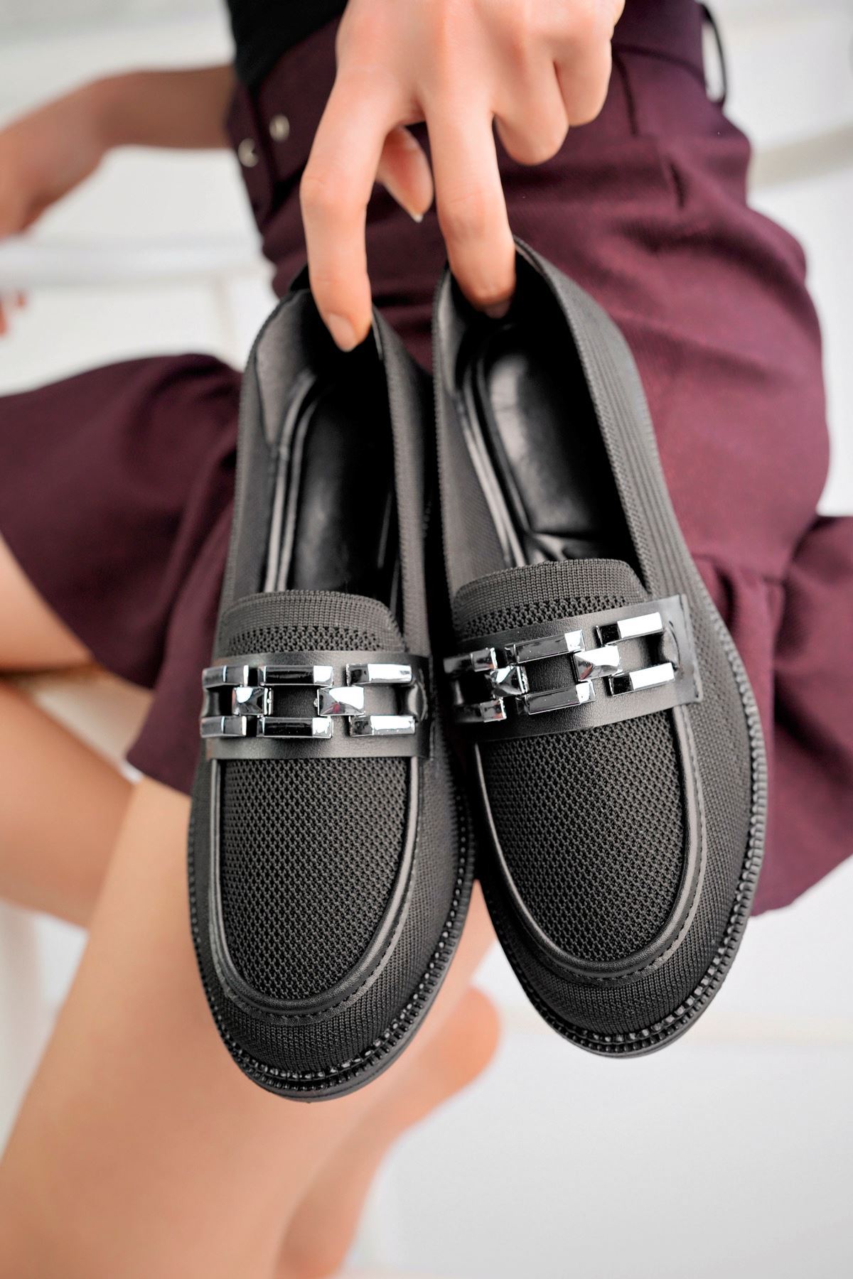Dolgu Topuk Siyah Kadın Ayakkabı
