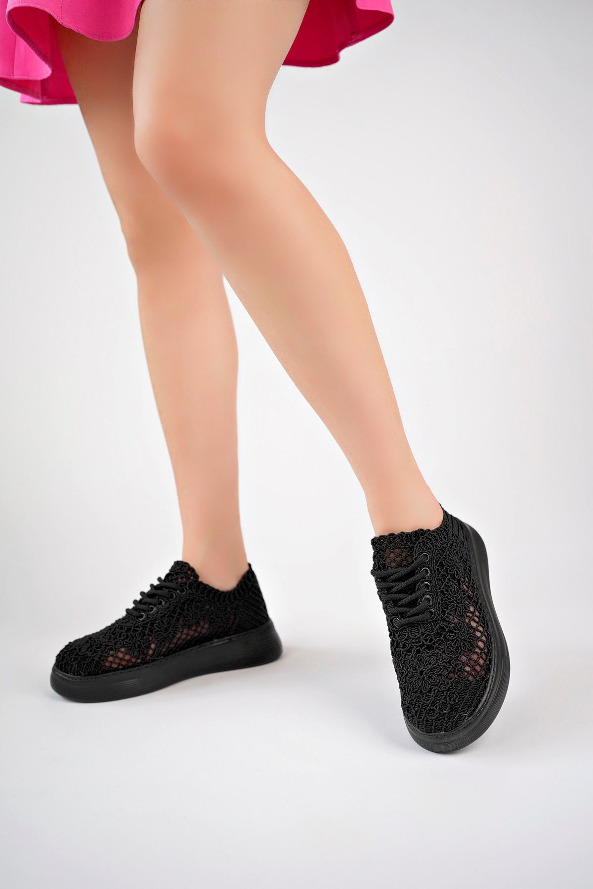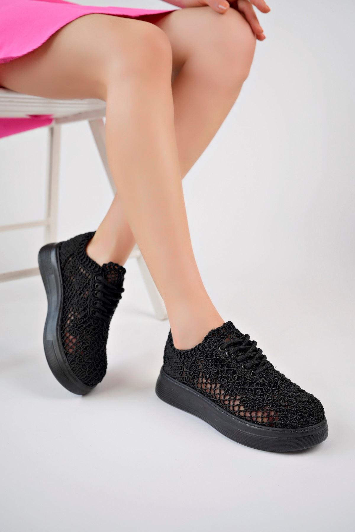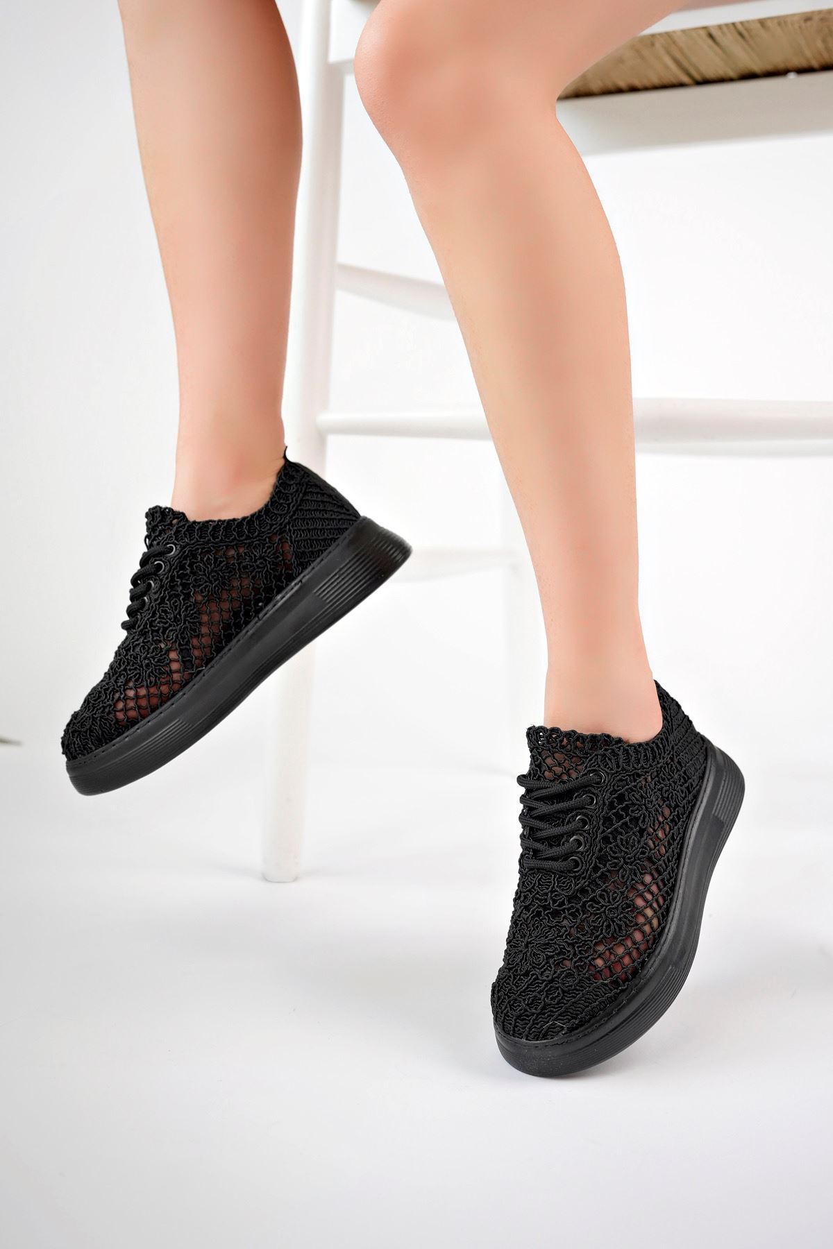 Dolgu Topuk Platform Siyah Cilt Kadın Ayakkabı