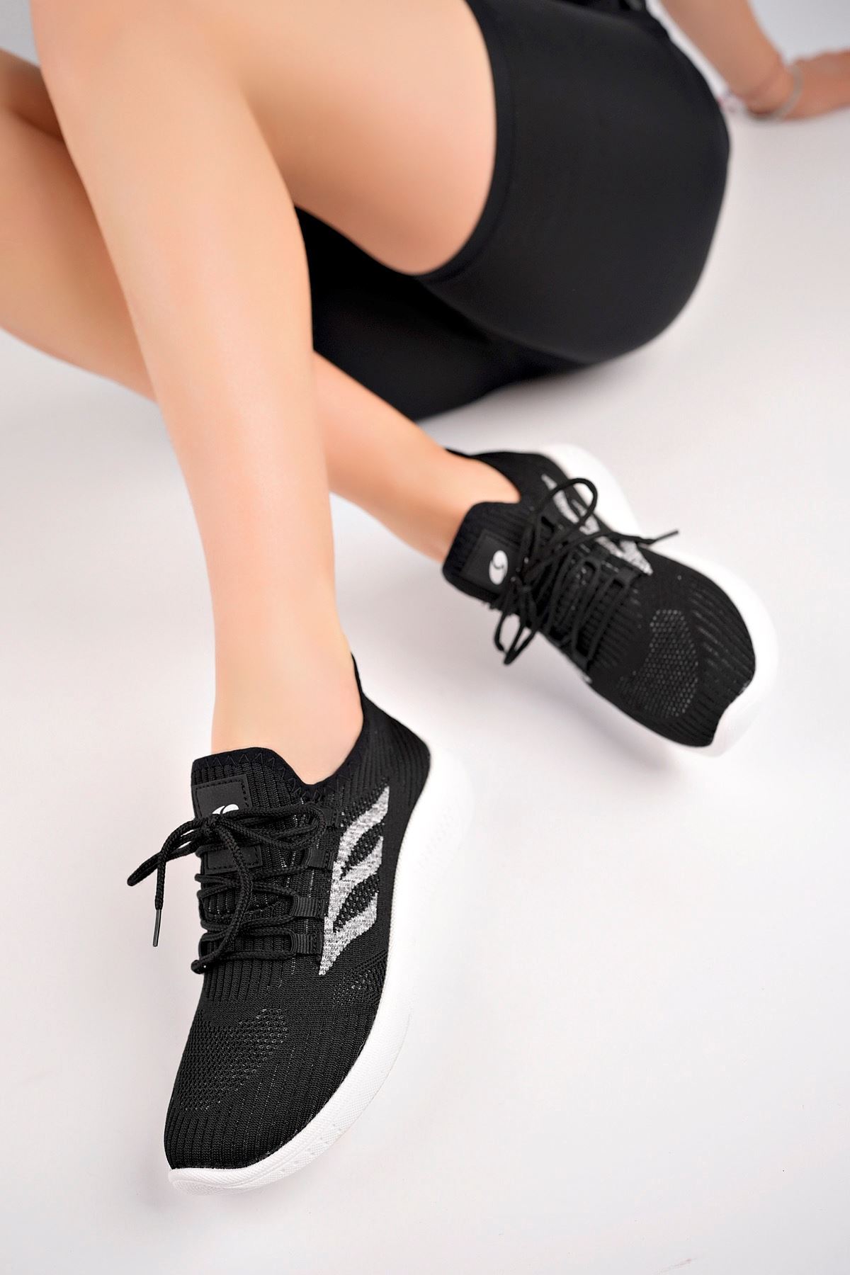 Dolgu Topuk Siyaha Beyaz Taban Ayakkabı