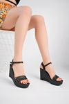 Dolgu Topuk Taşlı Beyaz Ayakkabı