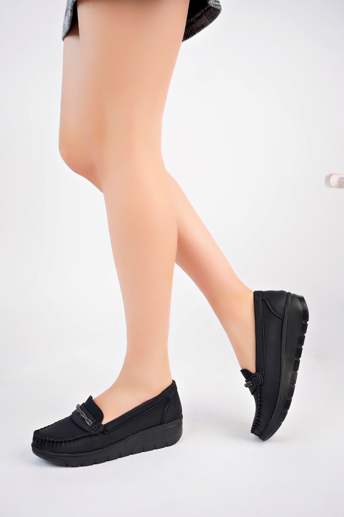 Dolgu Topuk Taşlı Siyah Kot Kadın Ayakkabı