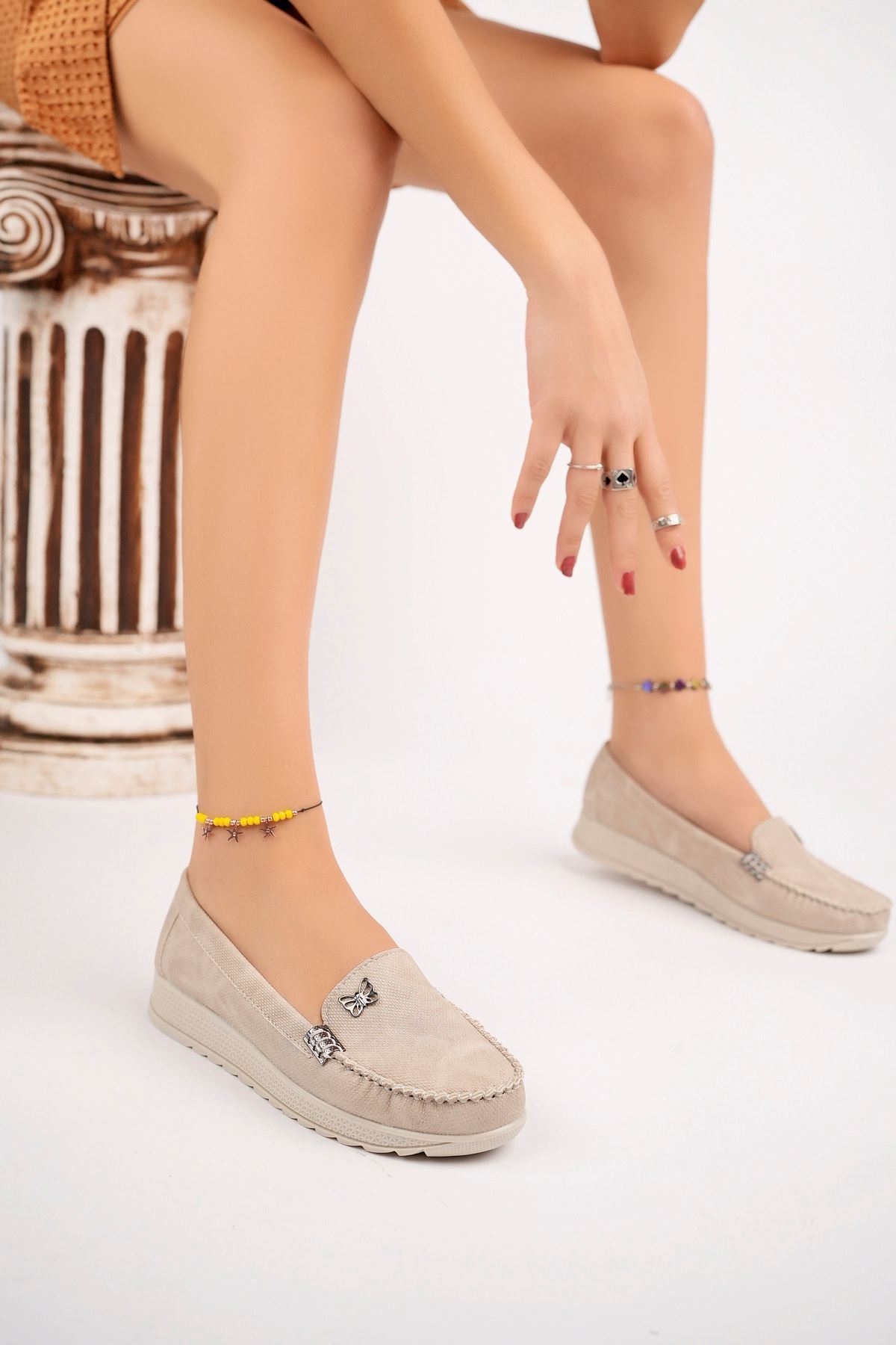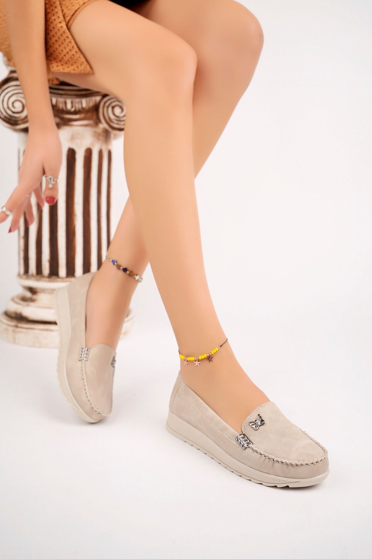 Dolgu Topuk Termo Taban Kelebekli Krem Kot Ayakkabı