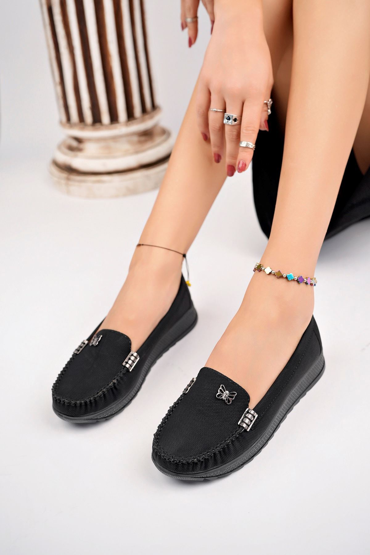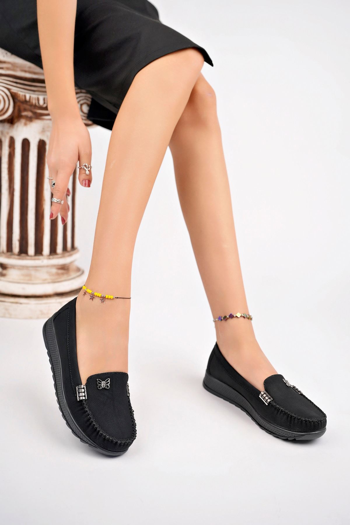 Dolgu Topuk Termo Taban Kelebekli Siyah Kot Ayakkabı
