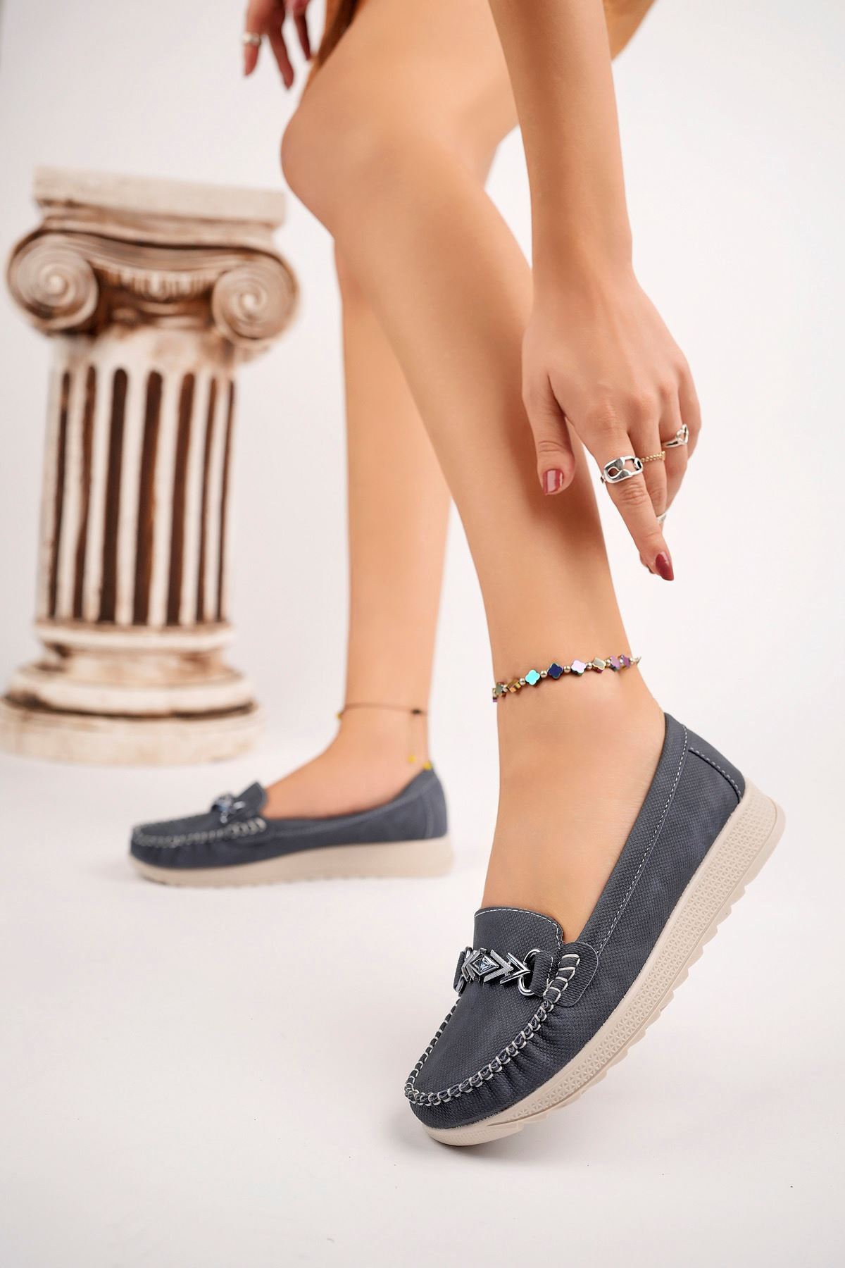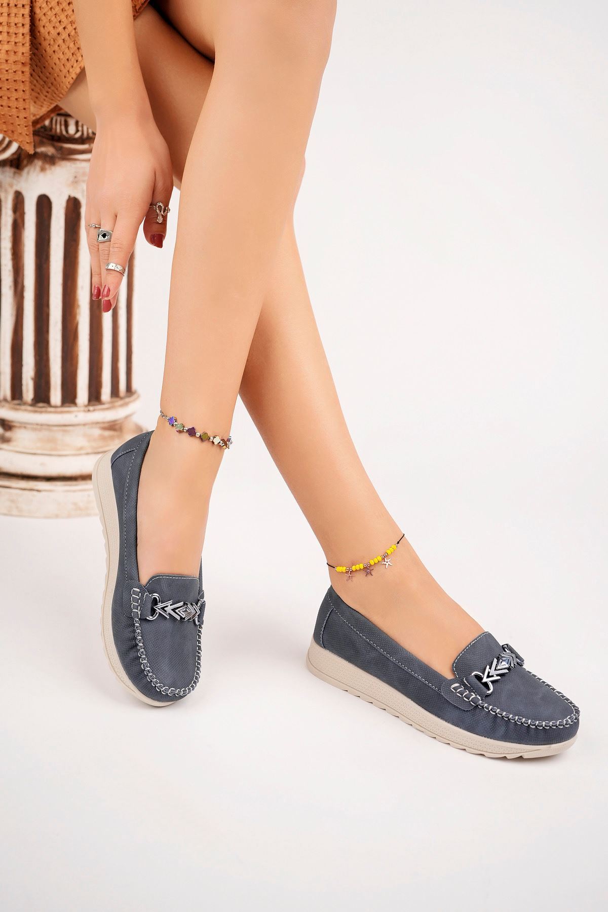 Dolgu Topuk Termo Taban Tokalı Lacivert Kot Ayakkabı
