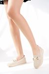 Dolgu Topuk Tokalı Krem Triko Ayakkabı