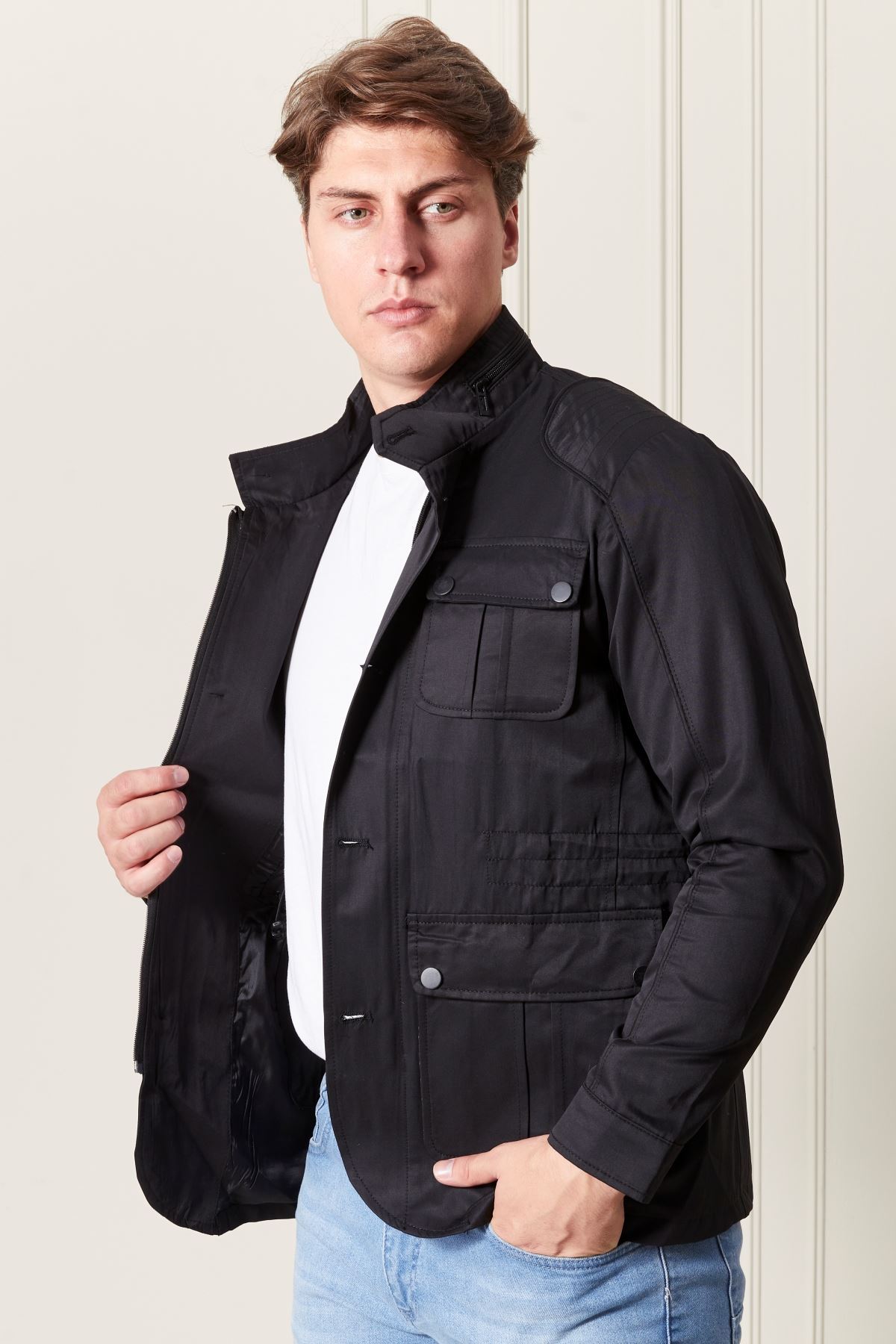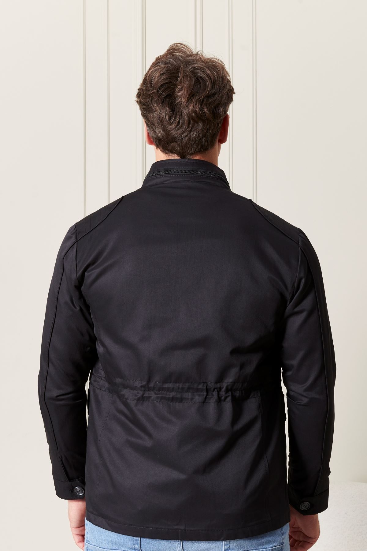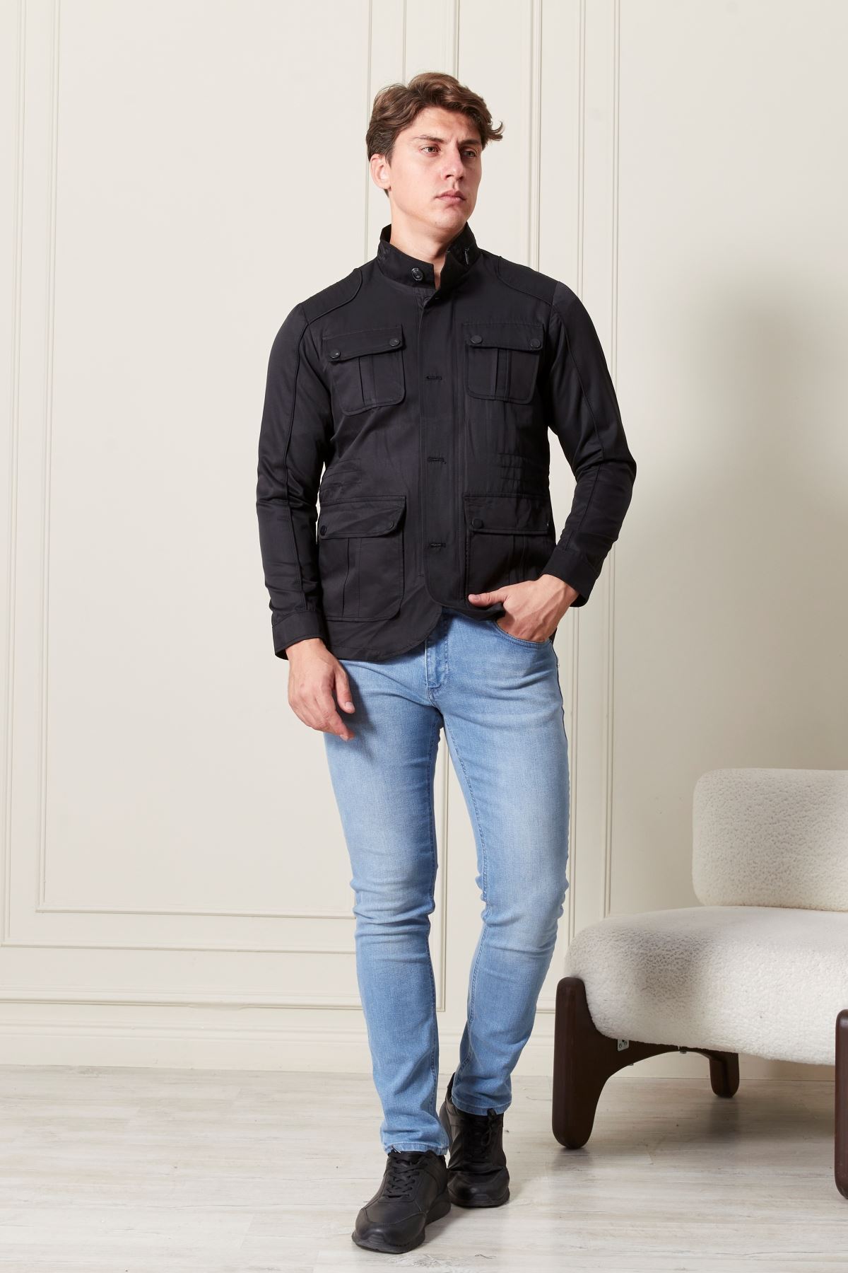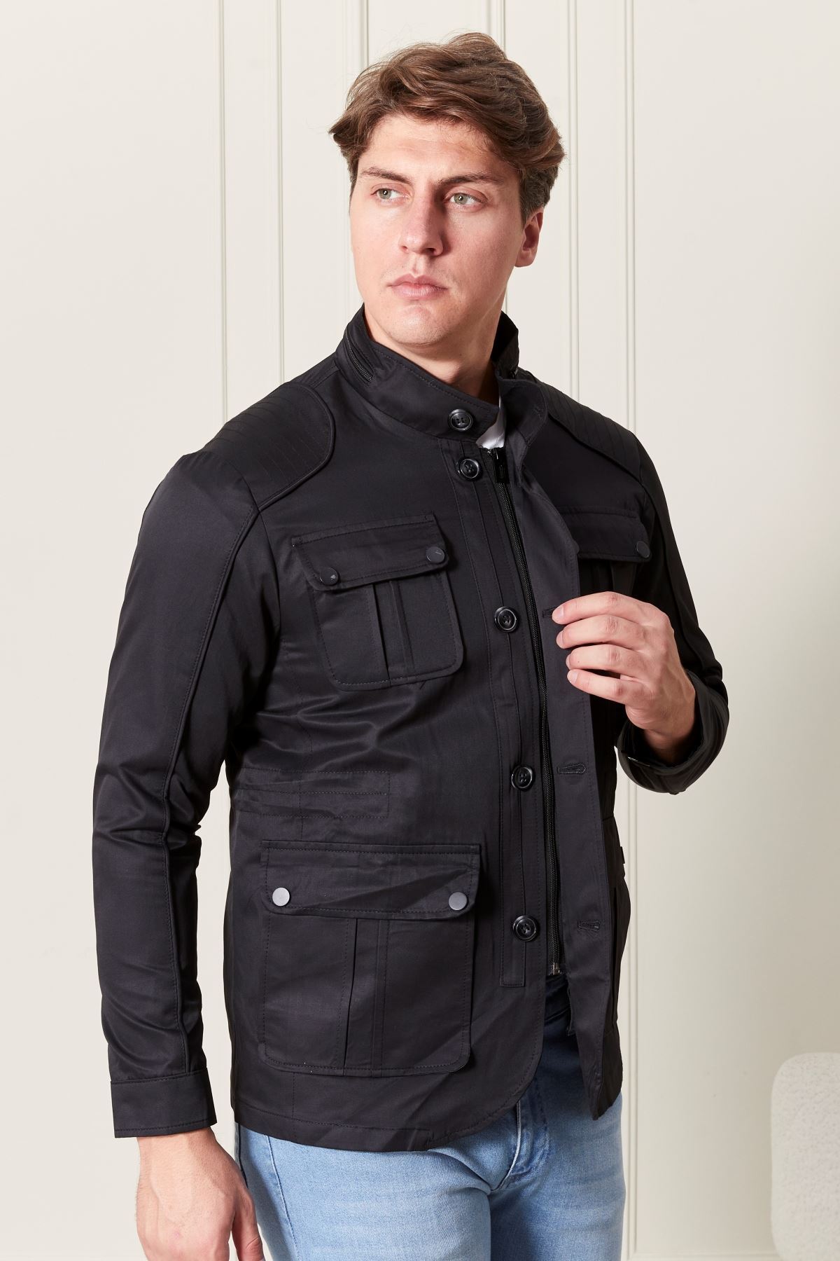 Düğmeli Siyah Erkek Trençkot