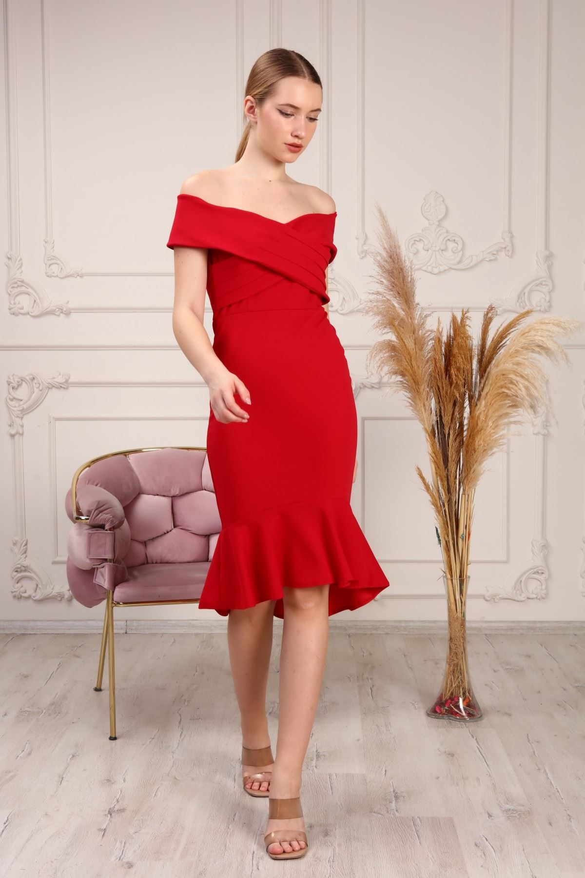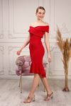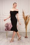 Eteği Fırfırlı Düşük Omuz Kadın Elbise