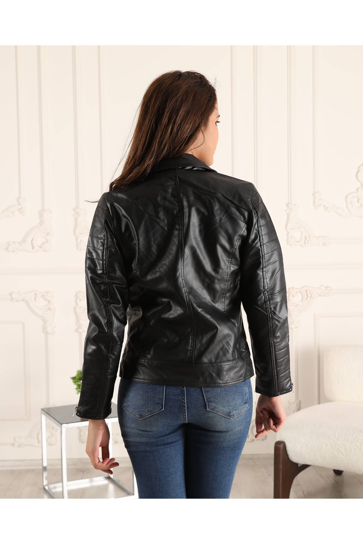 Fermuarlı İçi Polar Kadın Deri Mont