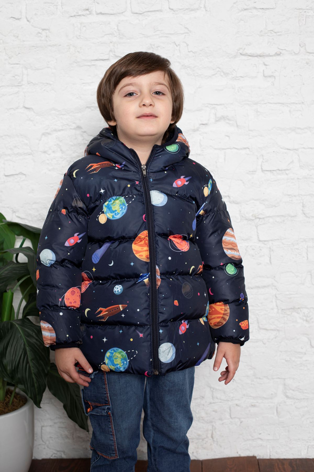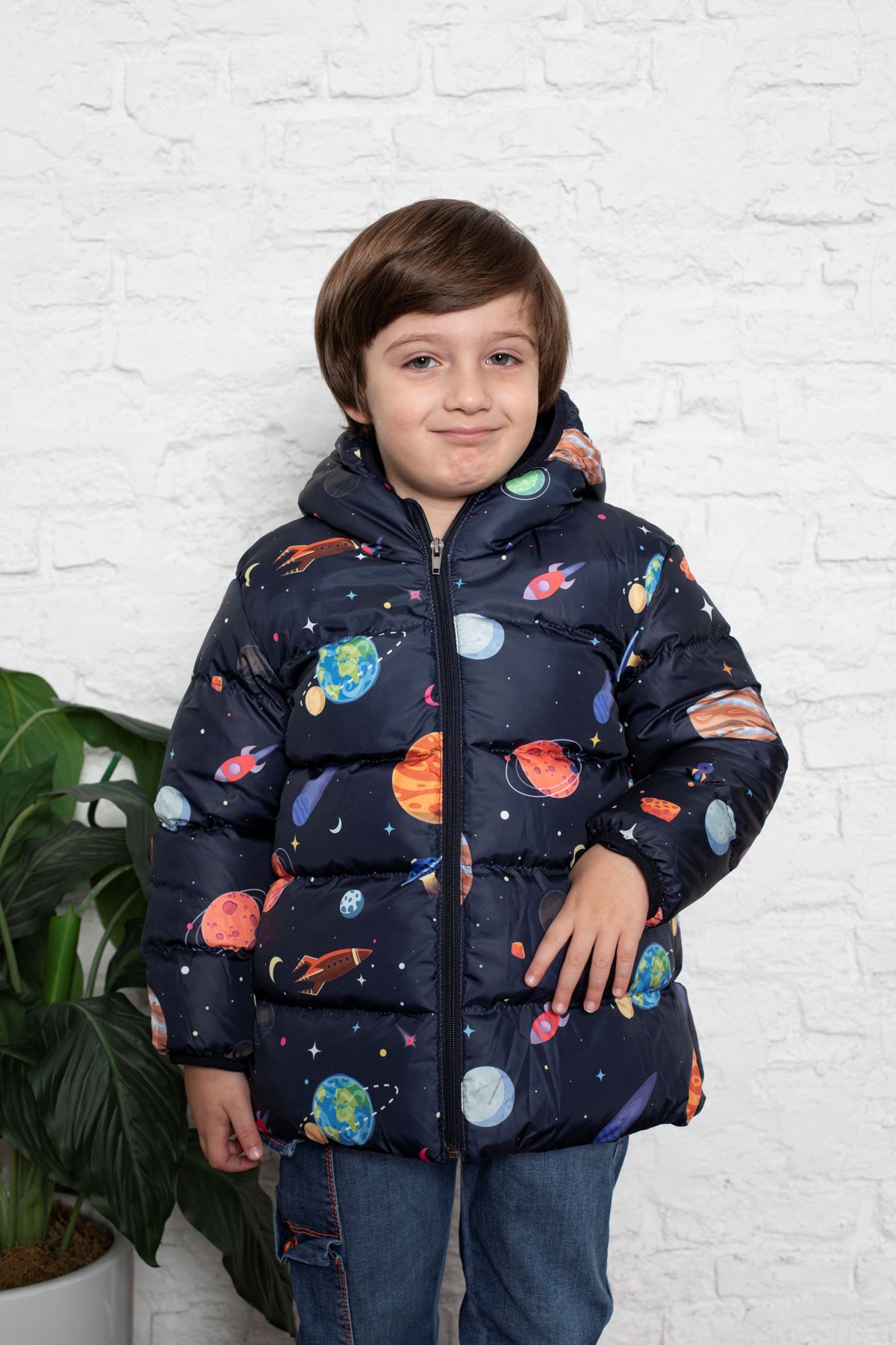 Gezegen Desenli İçi Polar Bebe Mont