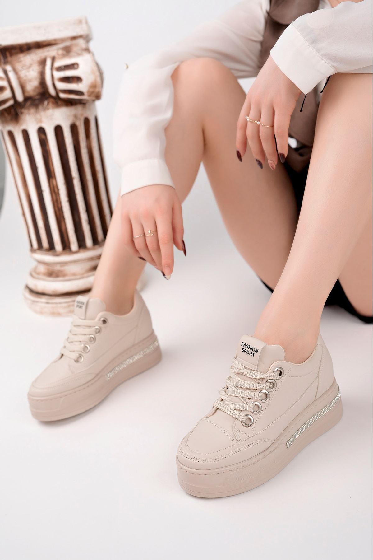 Gizli Dolgu Topuk Bej Cilt Ayakkabı