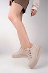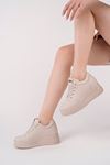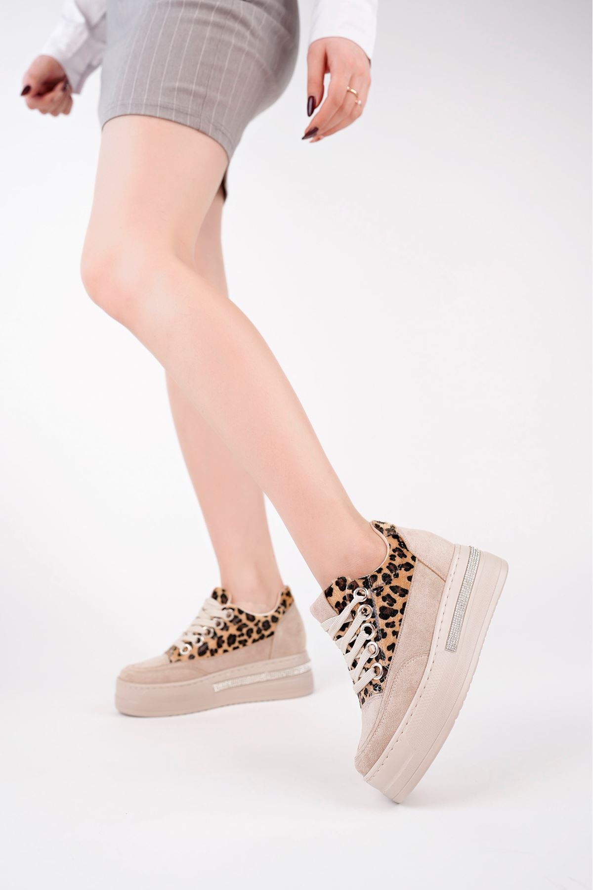Gizli Dolgu Topuk Bej Leopar Ayakkabı