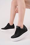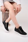 Dolgu Taban Lazerli Siyah Cilt Kadın Ayakkabı