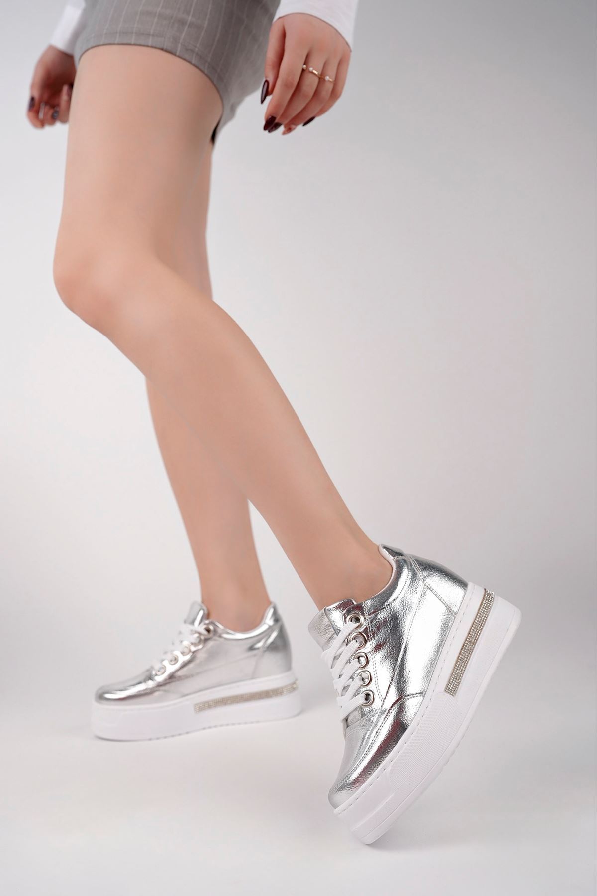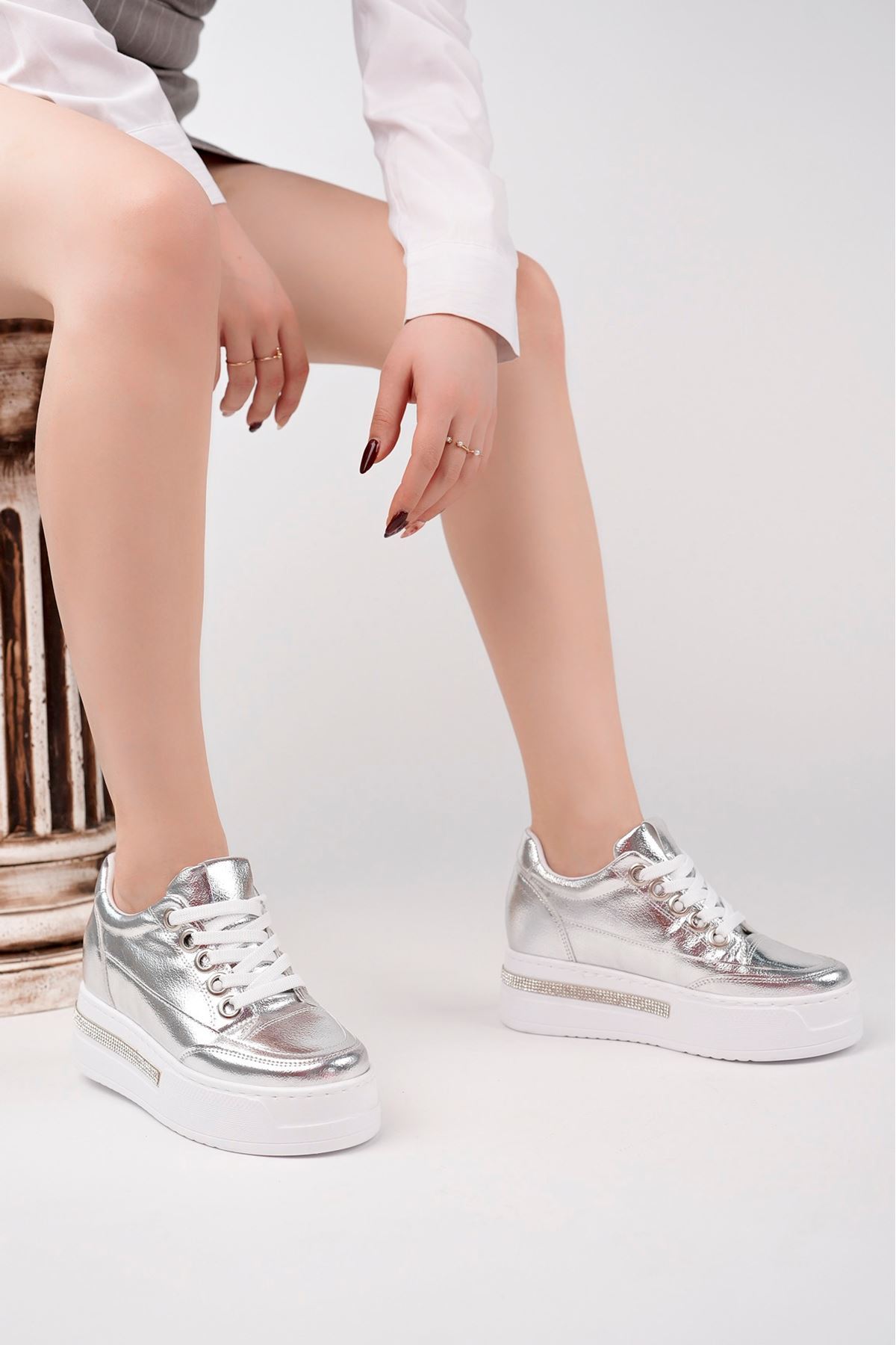 Gizli Dolgu Topuk Gümüş Ayakkabı
