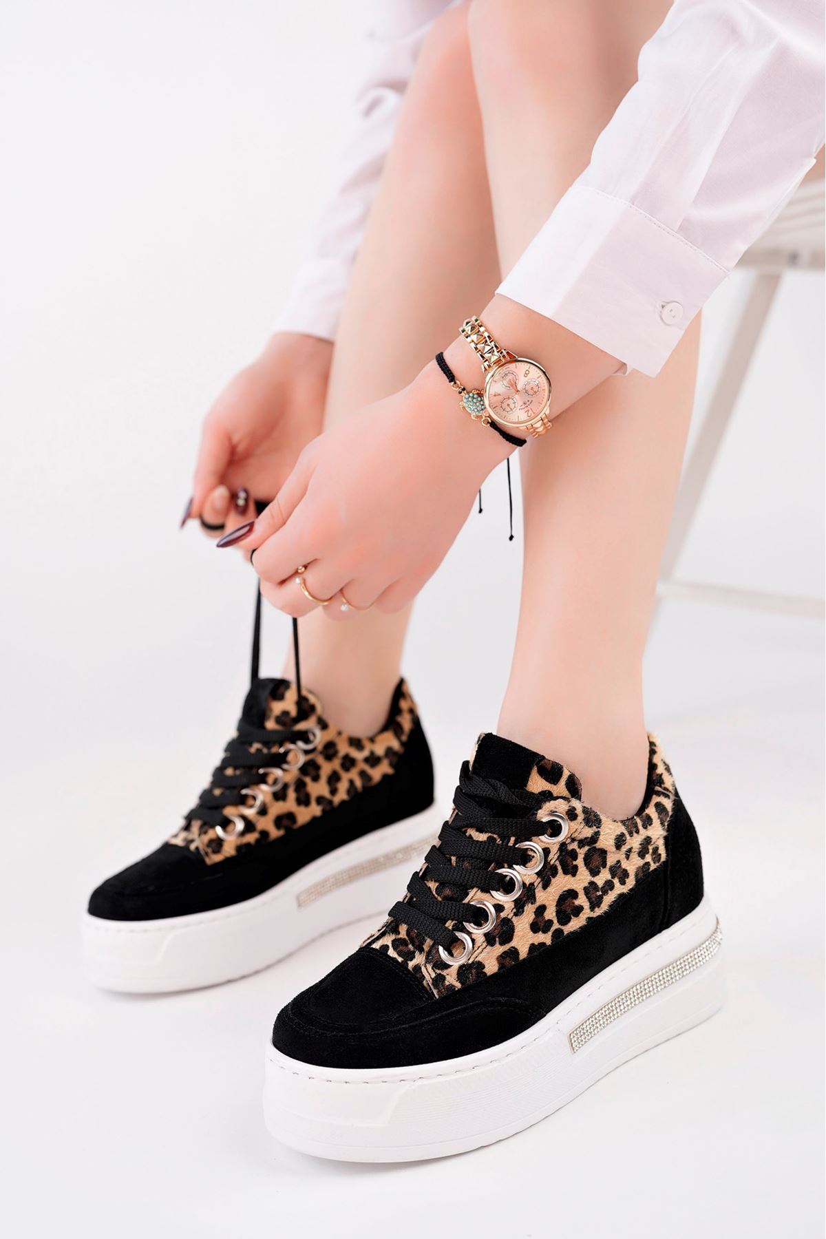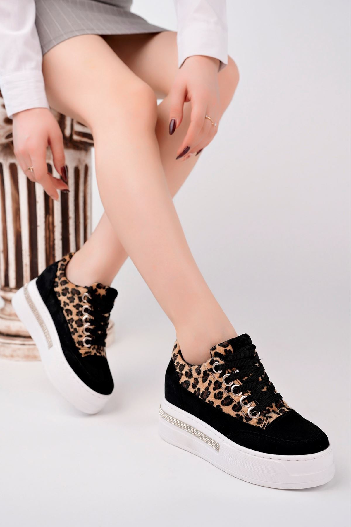 Gizli Dolgu Topuk Siyah Leopar Ayakkabı