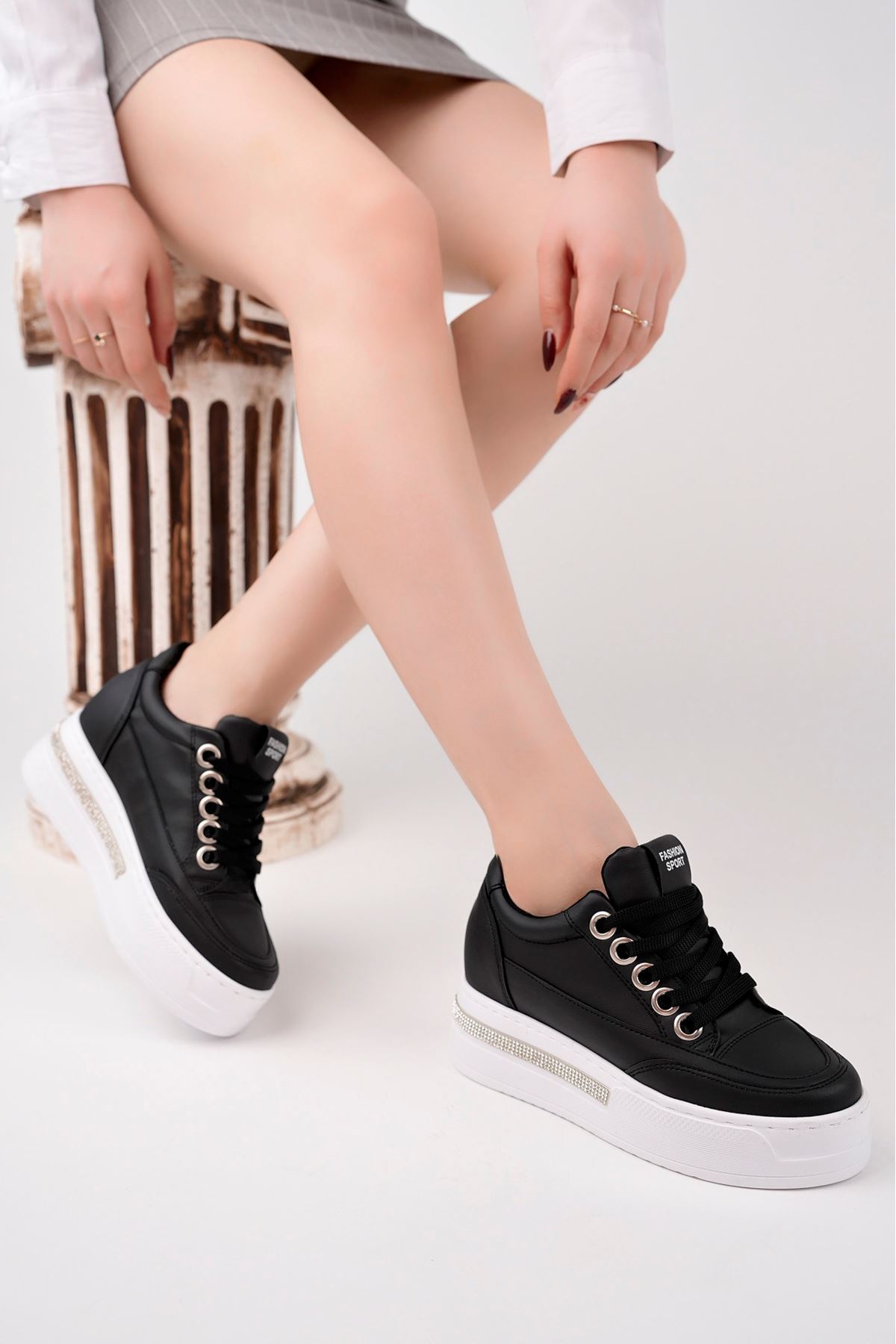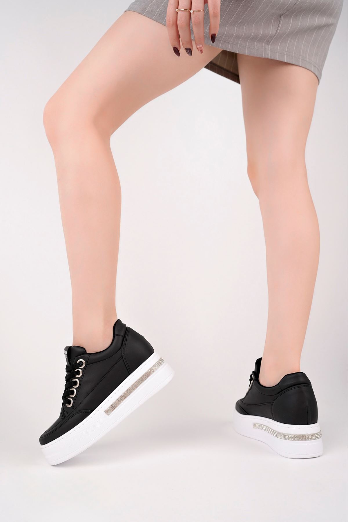 Gizli Dolgu Topuk Siyaha Beyaz Taban Ayakkabı