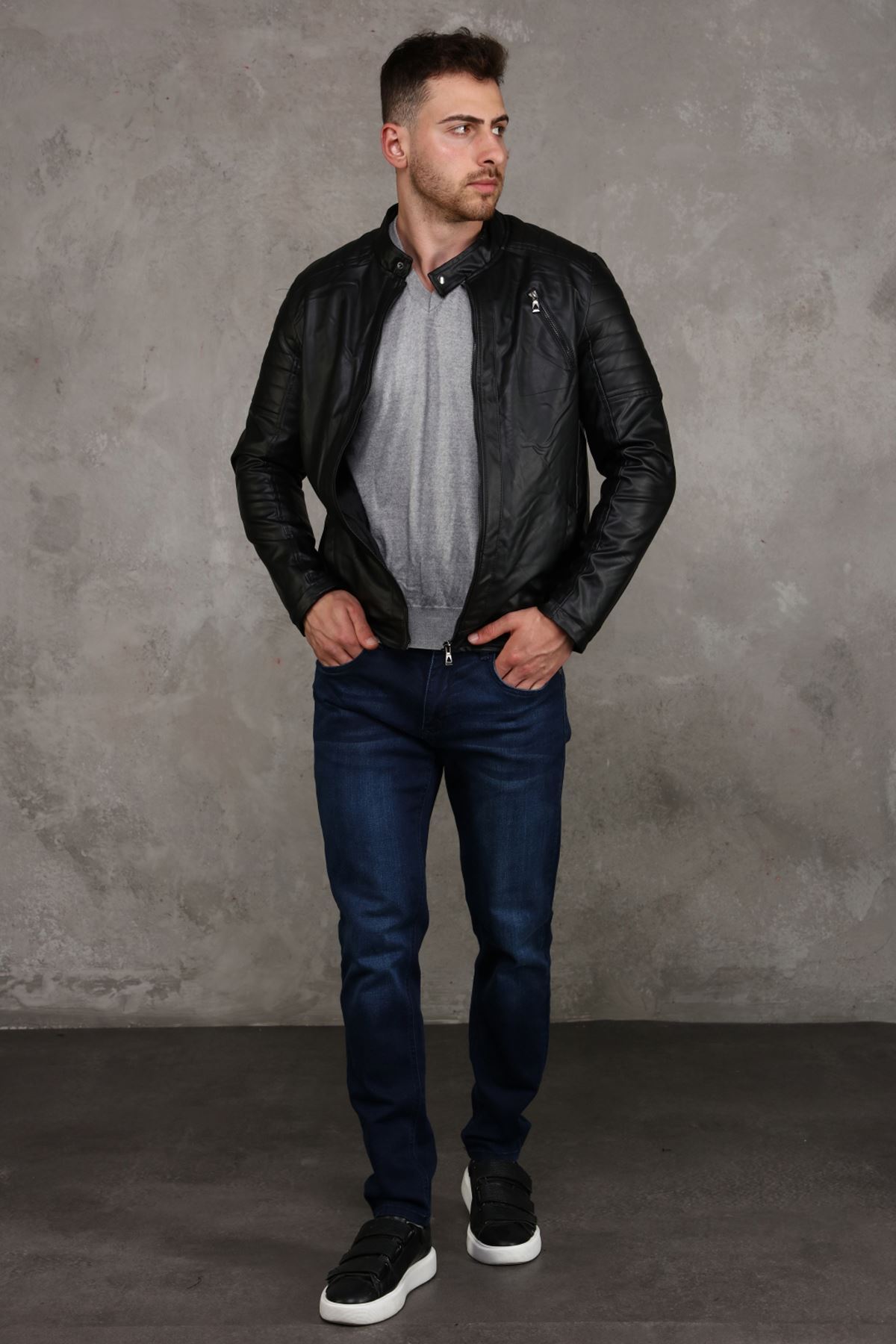 İçi Polar Erkek Deri Mont