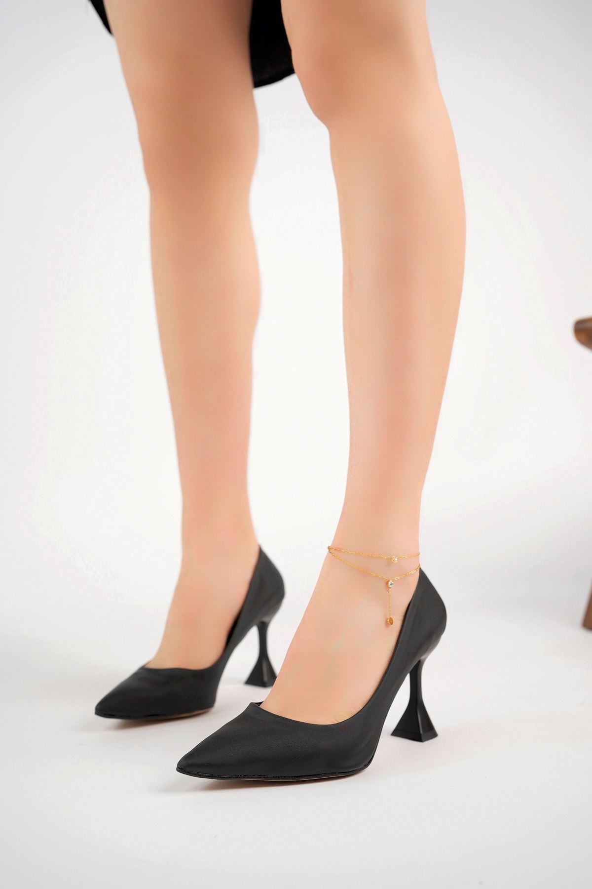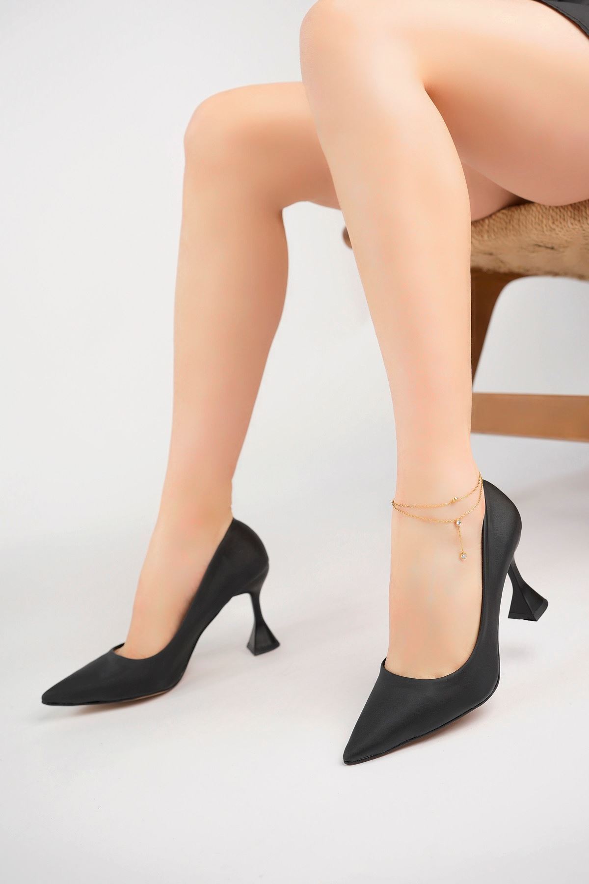 Kadeh Ökçe Dekolte Siyah Saten Ayakkabı