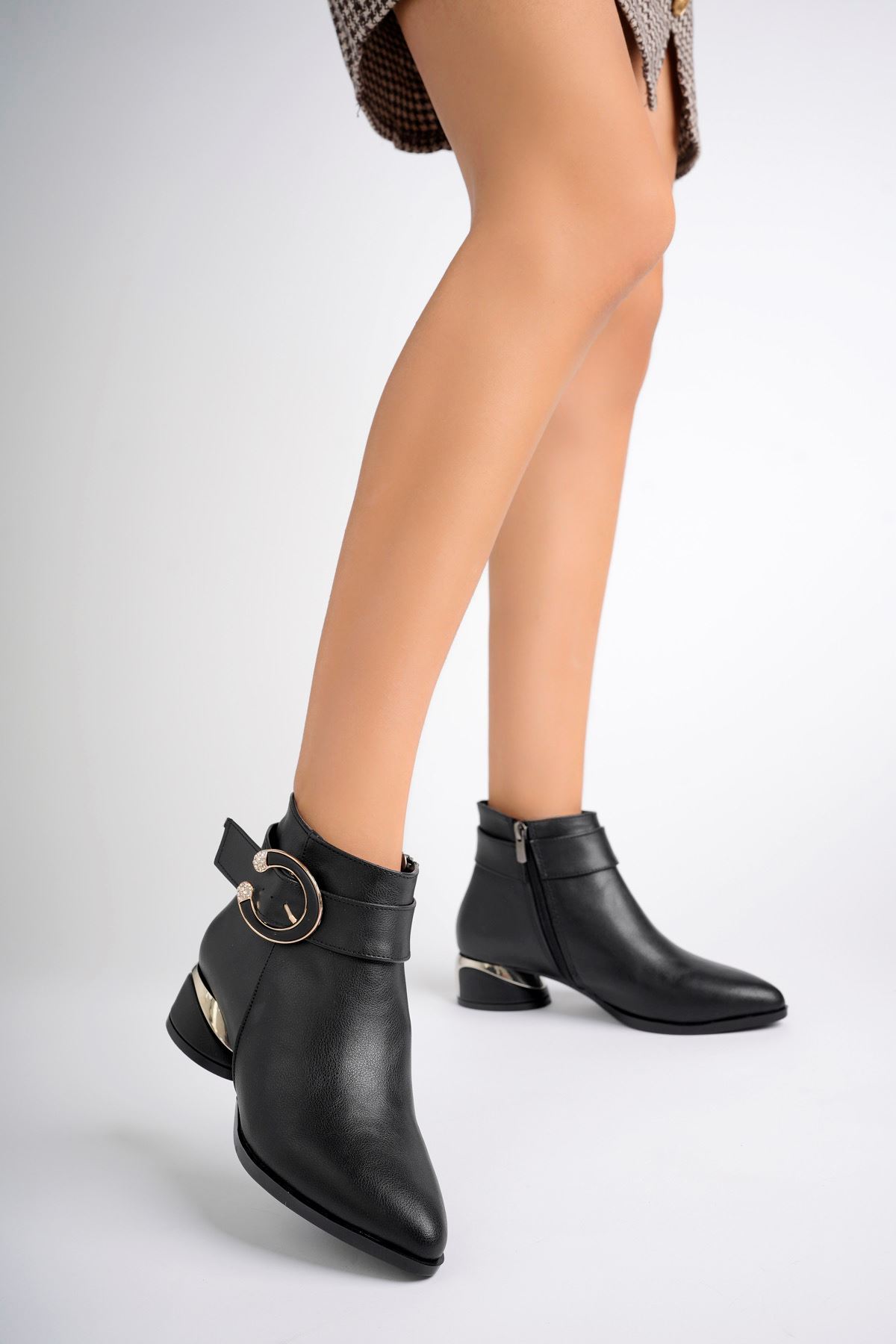 Kaplama Ökçe Siyah Cilt Kadın Bot