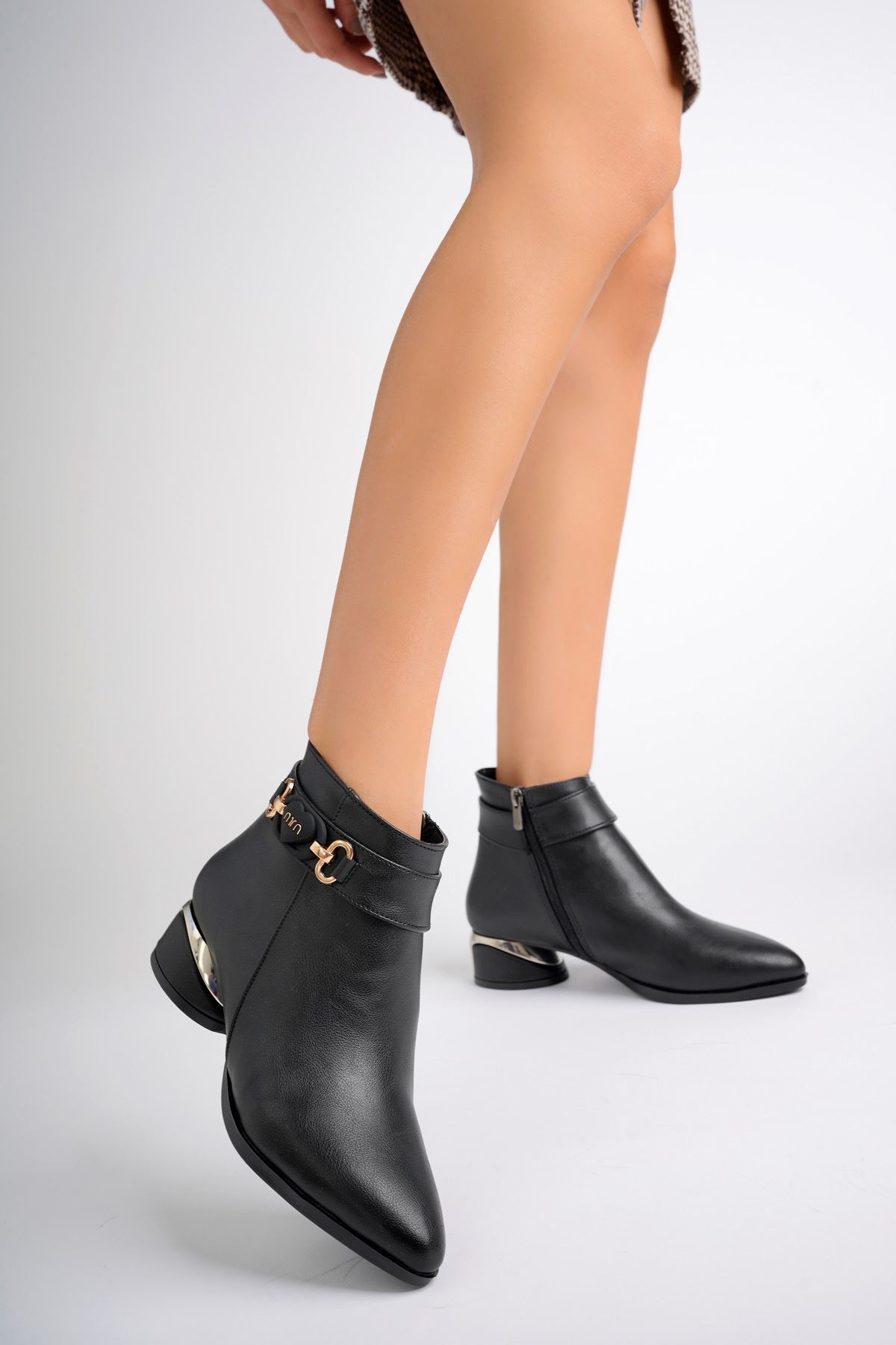 Kaplama Ökçe Siyah Cilt Kadın Bot