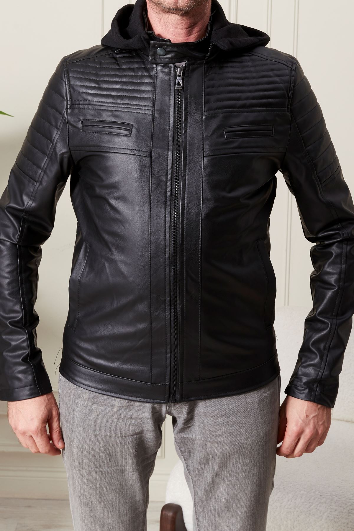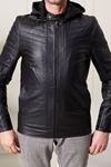 Kapşonlu Erkek Deri Mont