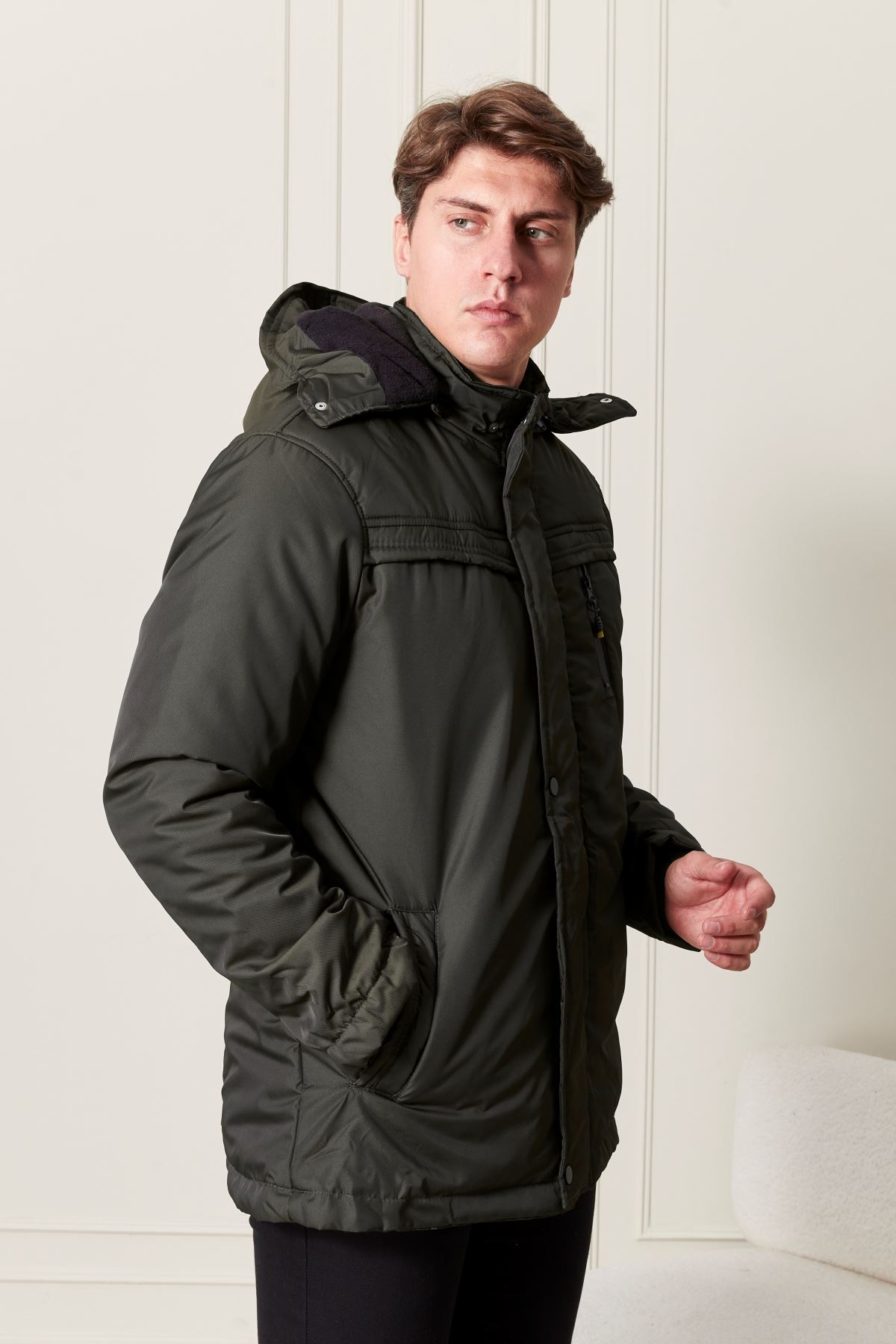 Kapşonlu İçi Yünlü Battal Erkek Mont