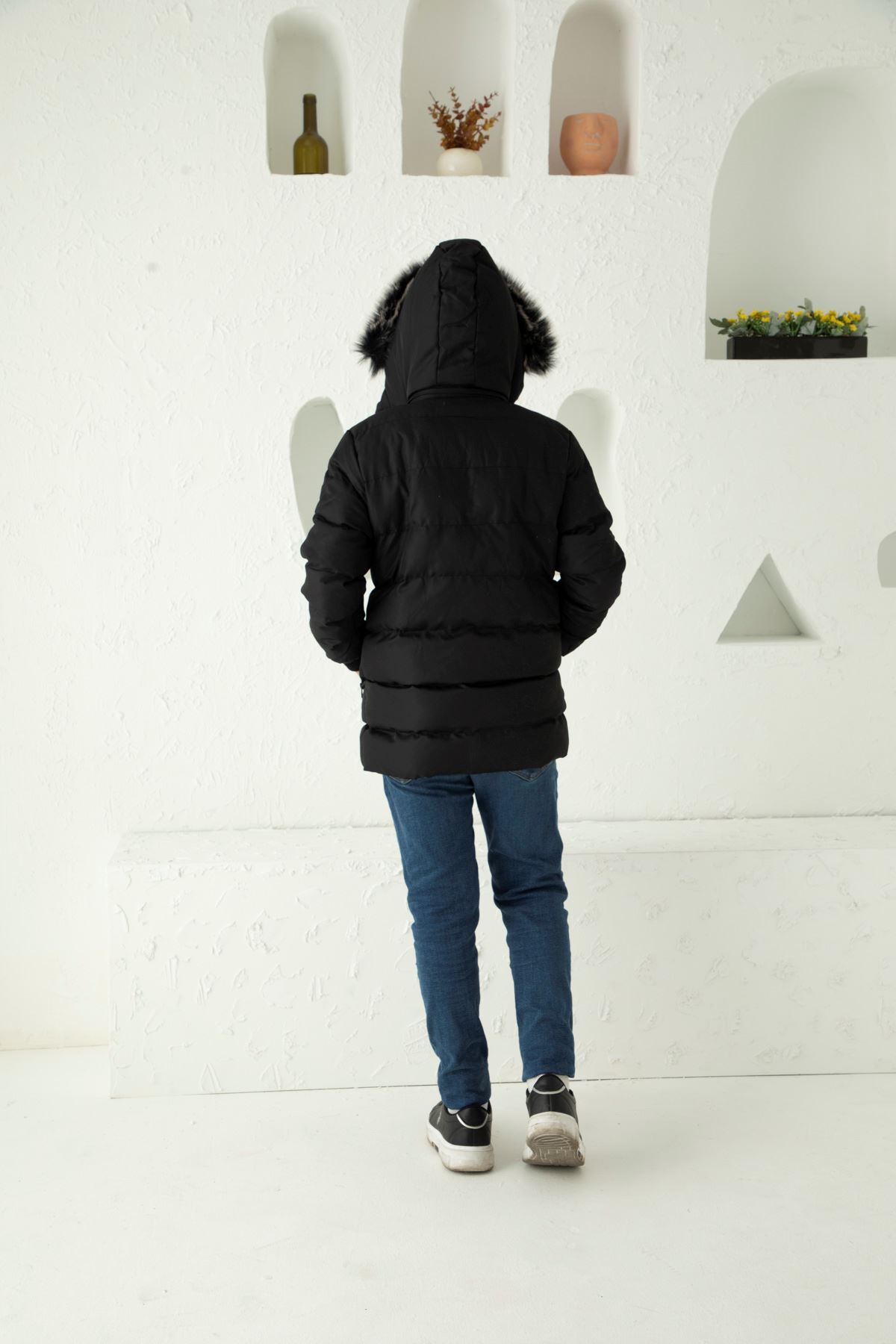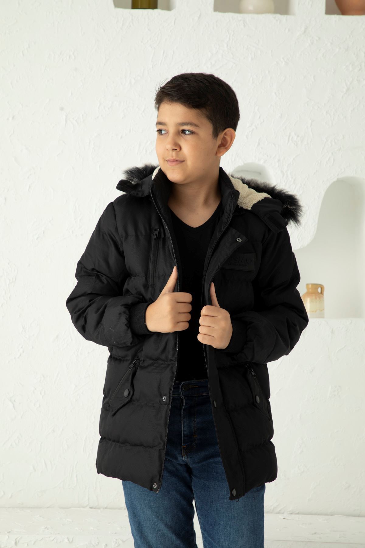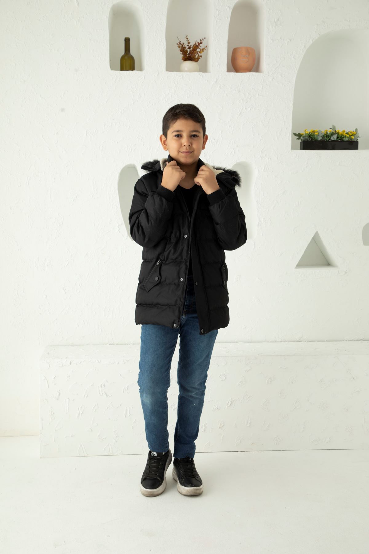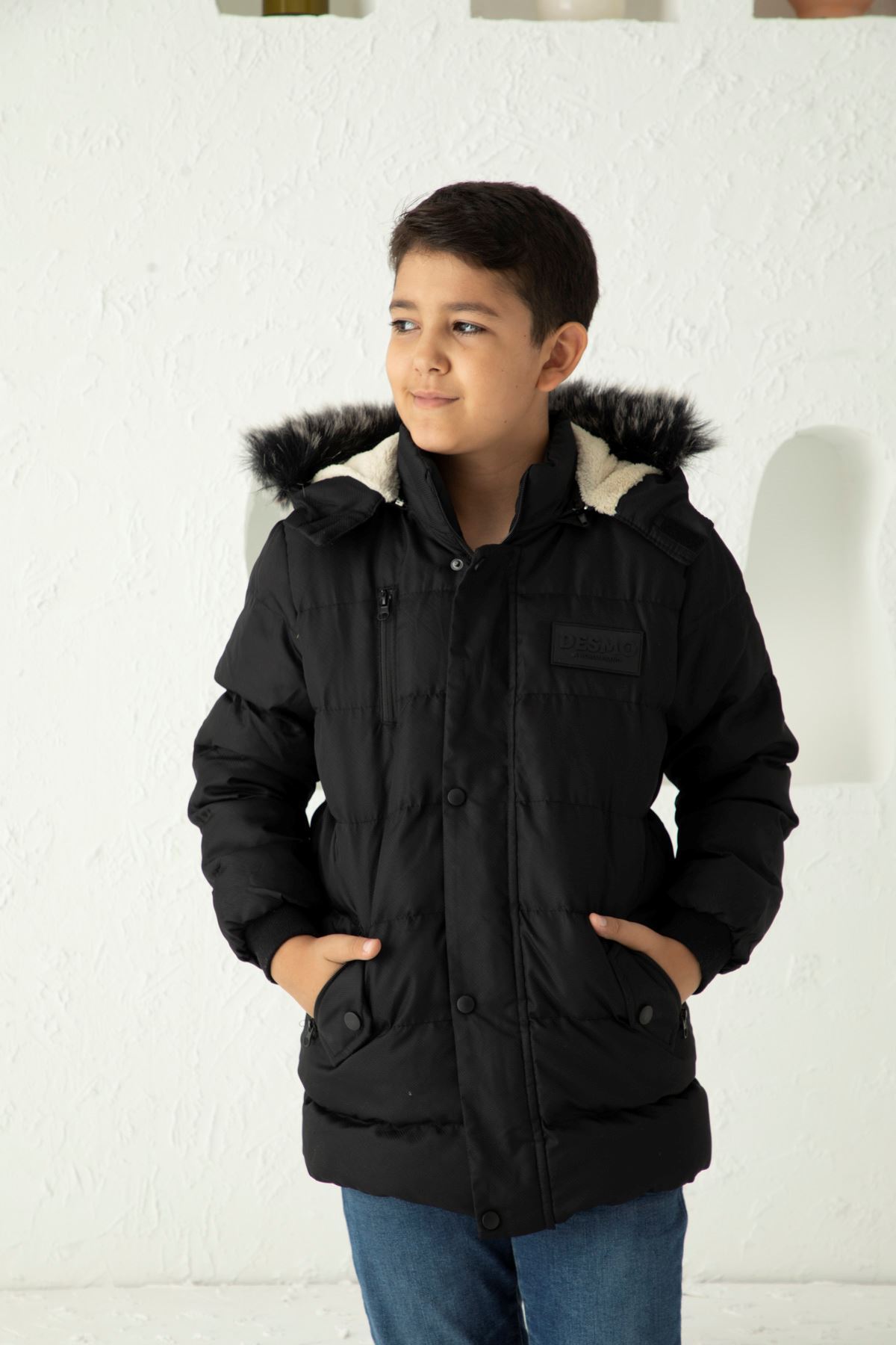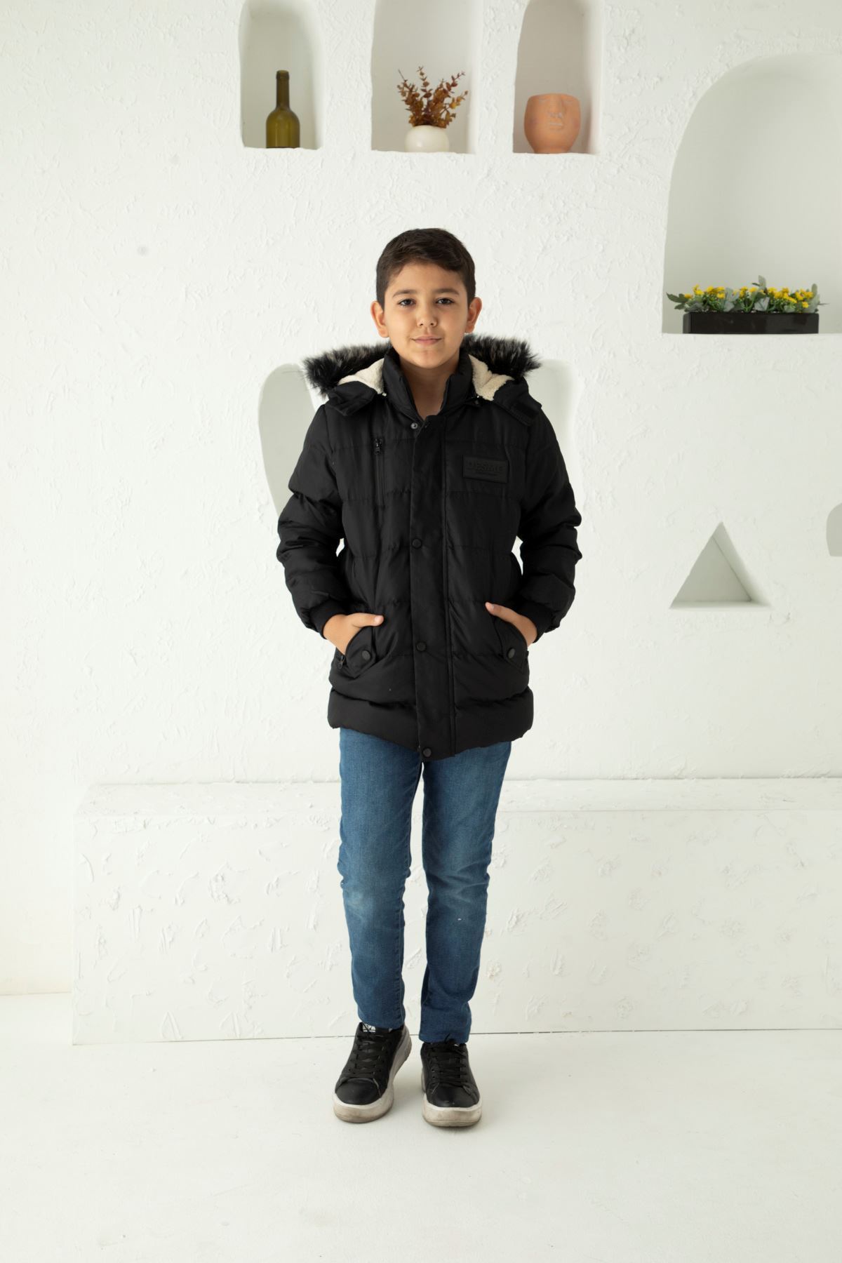 Kapşonlu İçi Yünlü Erkek Çocuk Şişme Mont