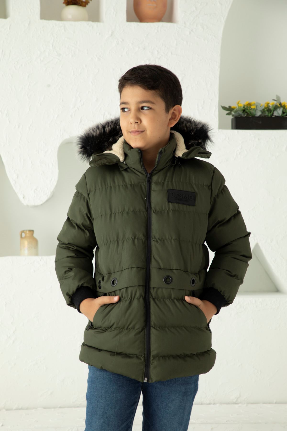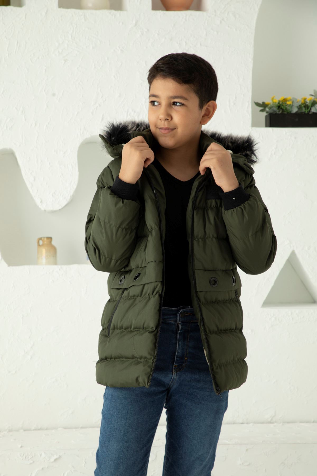 Kapşonlu İçi Yünlü Erkek Çocuk Şişme Mont