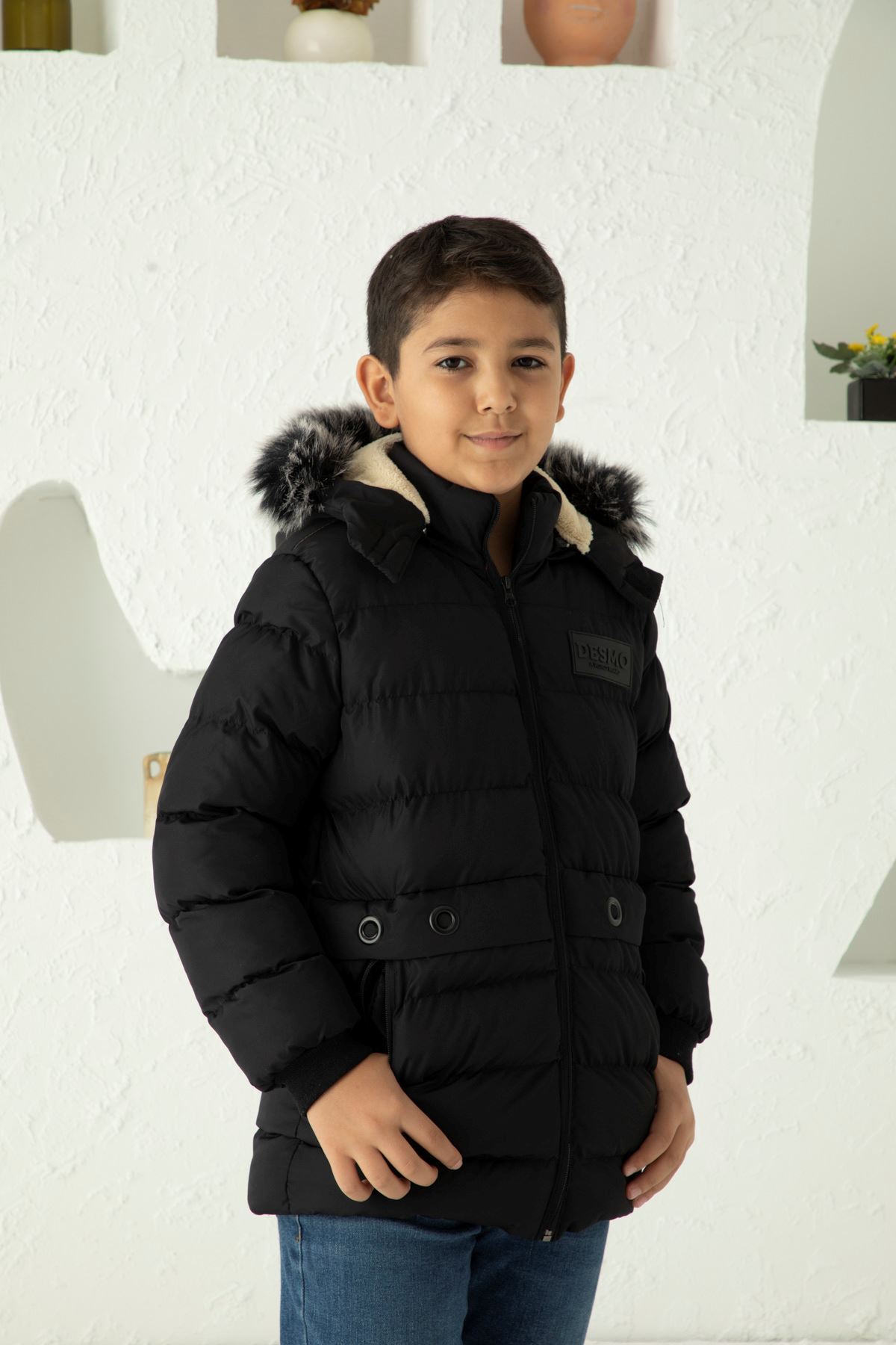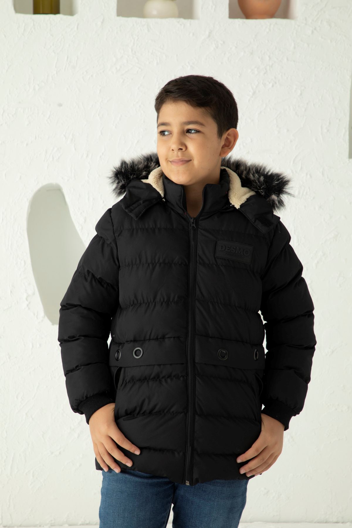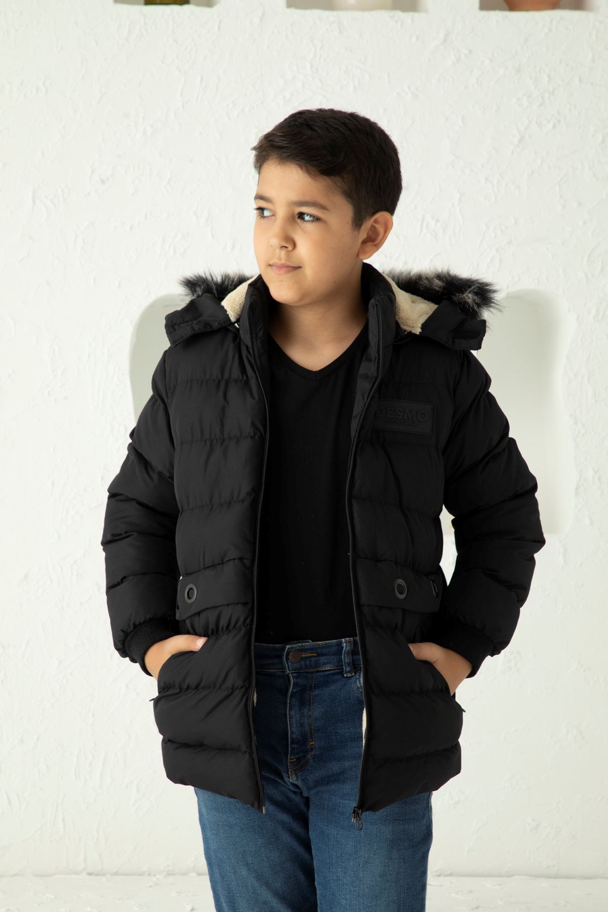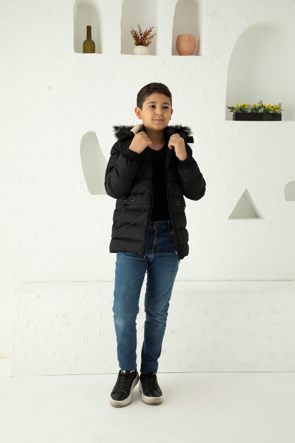 Kapşonlu İçi Yünlü Erkek Çocuk Şişme Mont